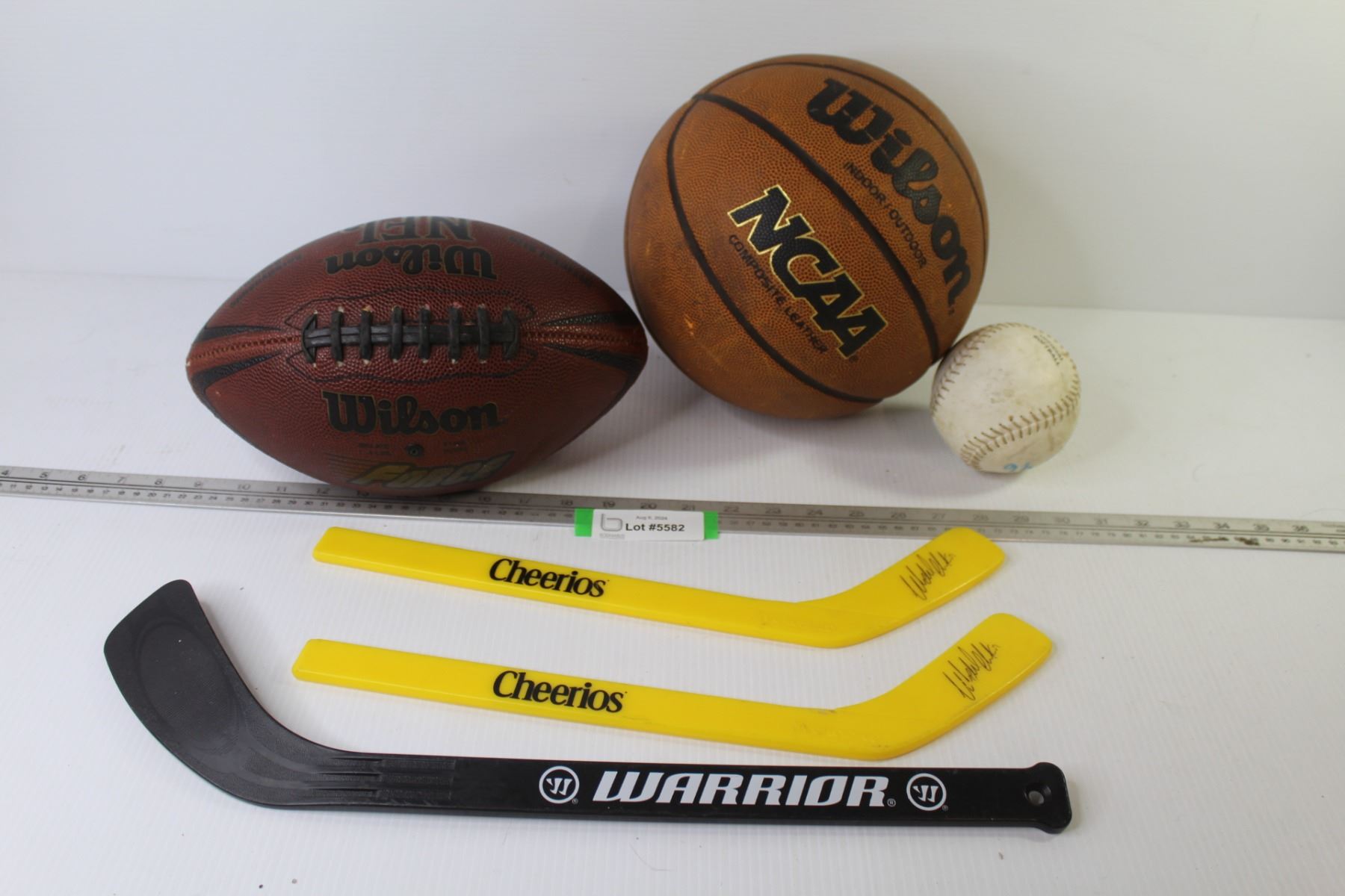 Basketball - Football - Baseball - (3) Plastic Hockey Sticks