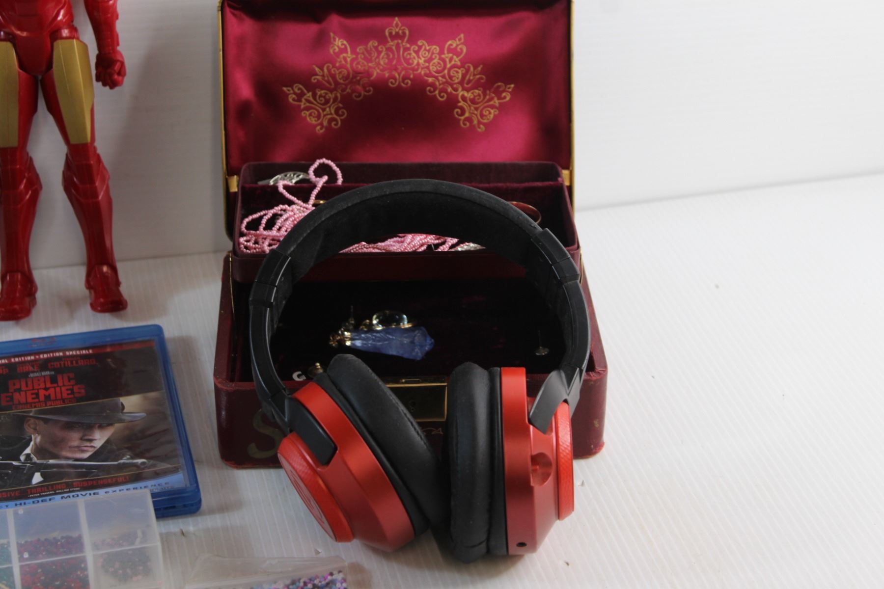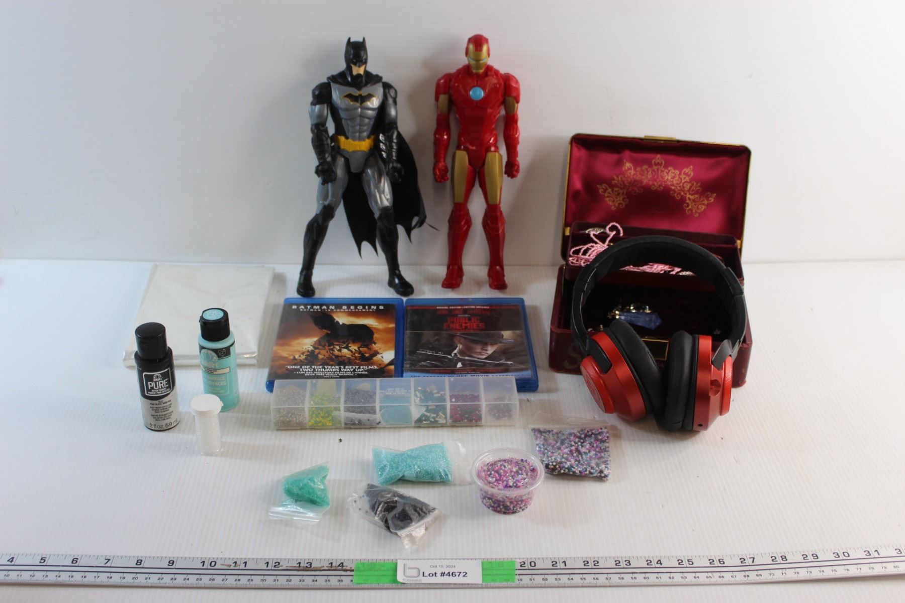 Batman & Ironman Action Figures, Crafting Beads, Jewelry Box, Headphones, Blue Ray Movies and Acryli
