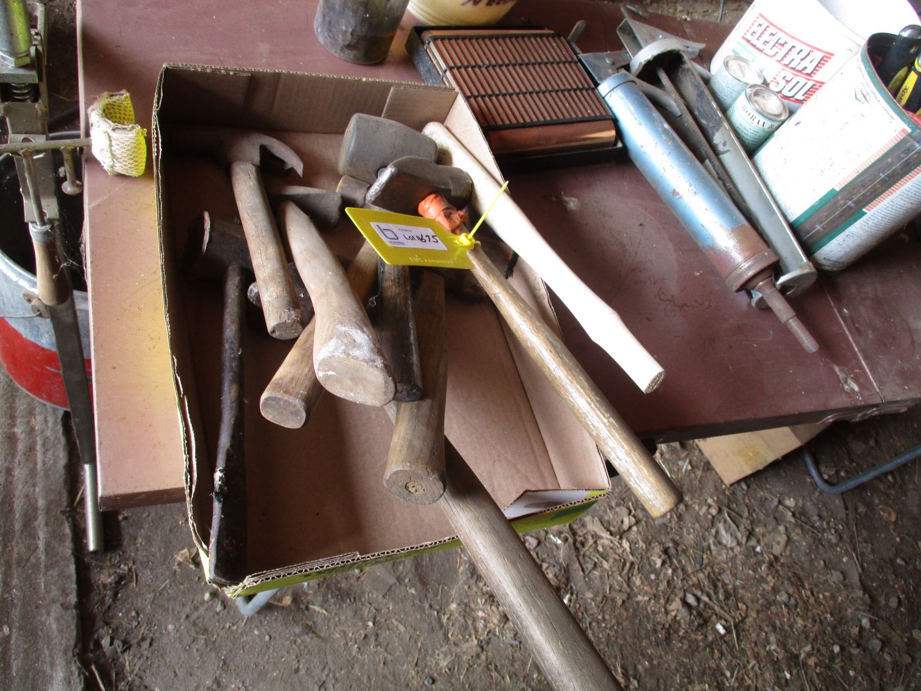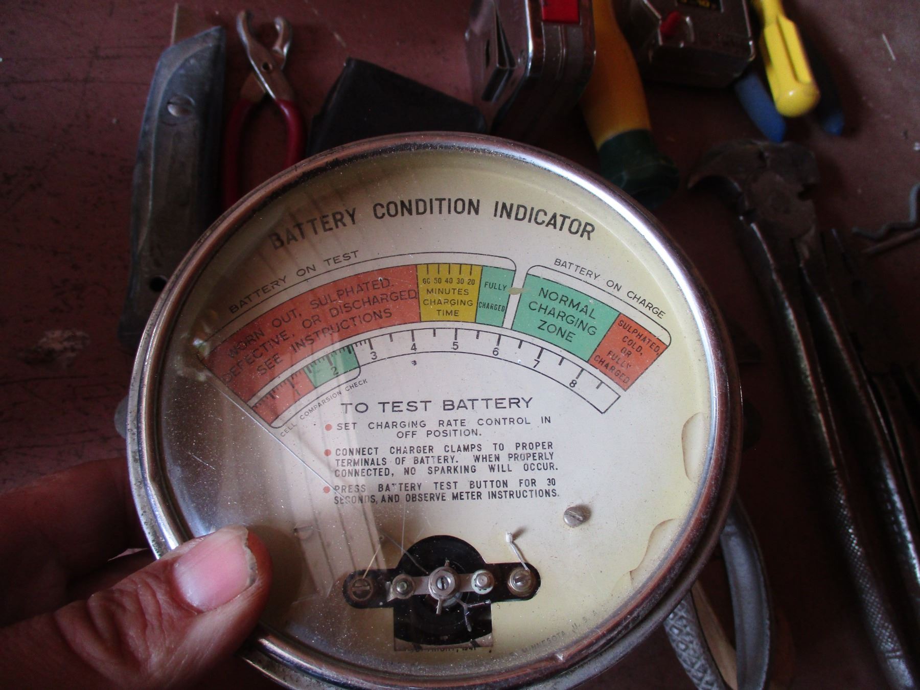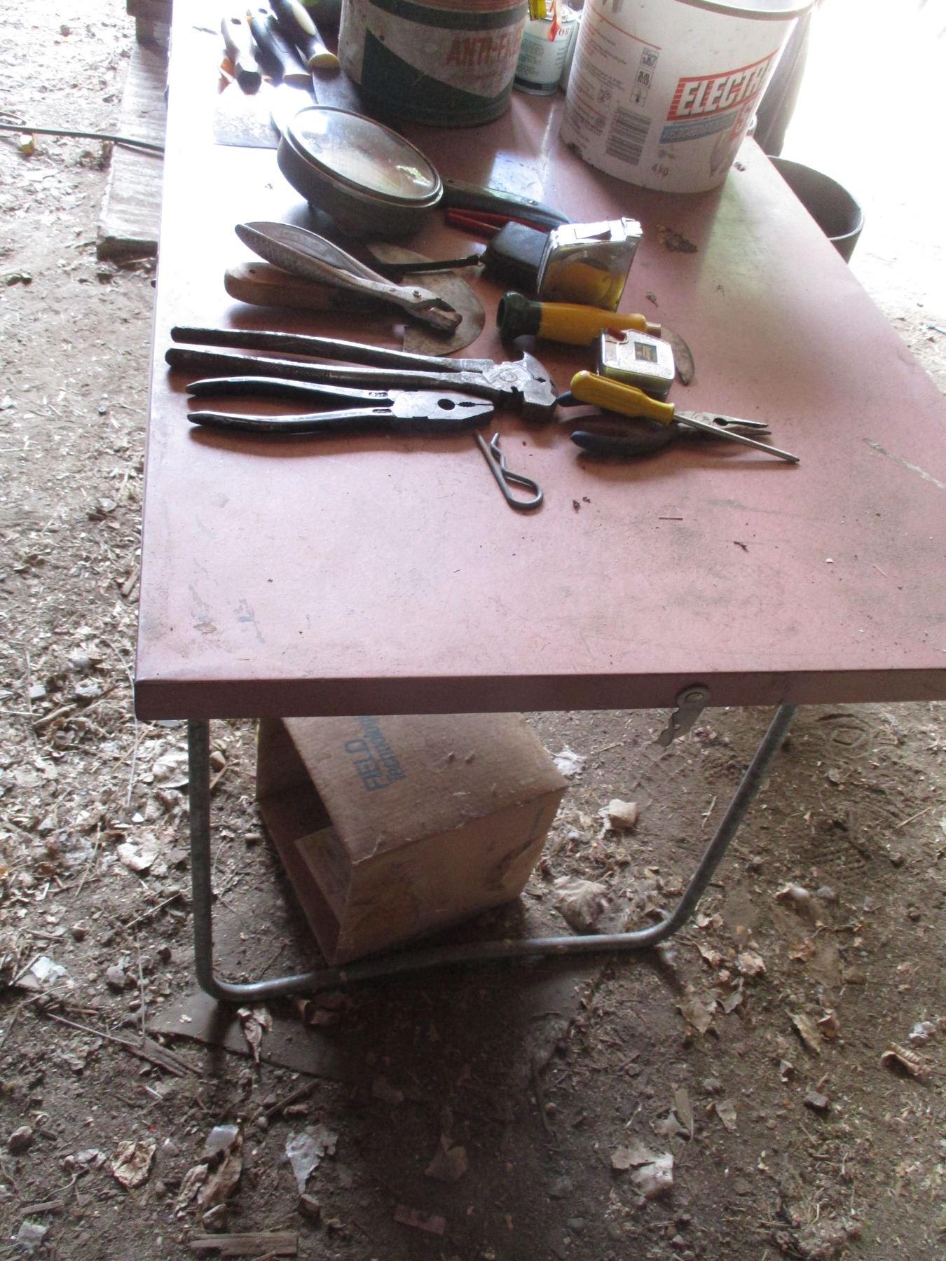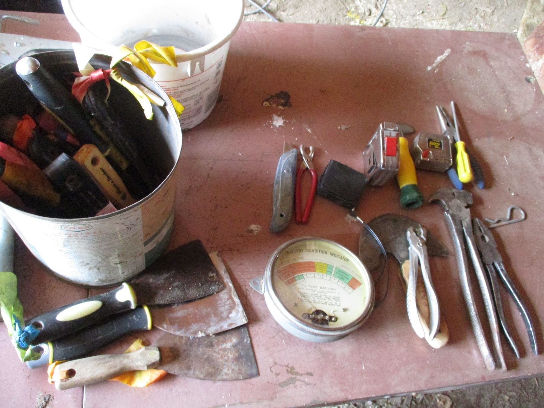 Battery Condition Indicator, Vintage Hammers, Pliers, Metal Table, Soil Test Probe, Scraper, Misc.