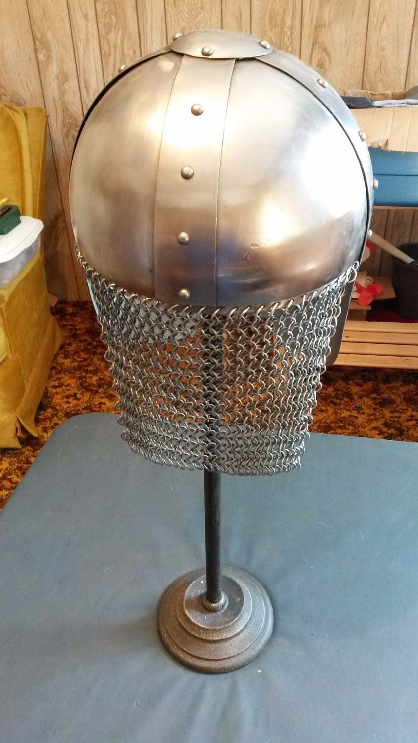 Battle Helmet With Iron Mesh & Stand (Reproduction)