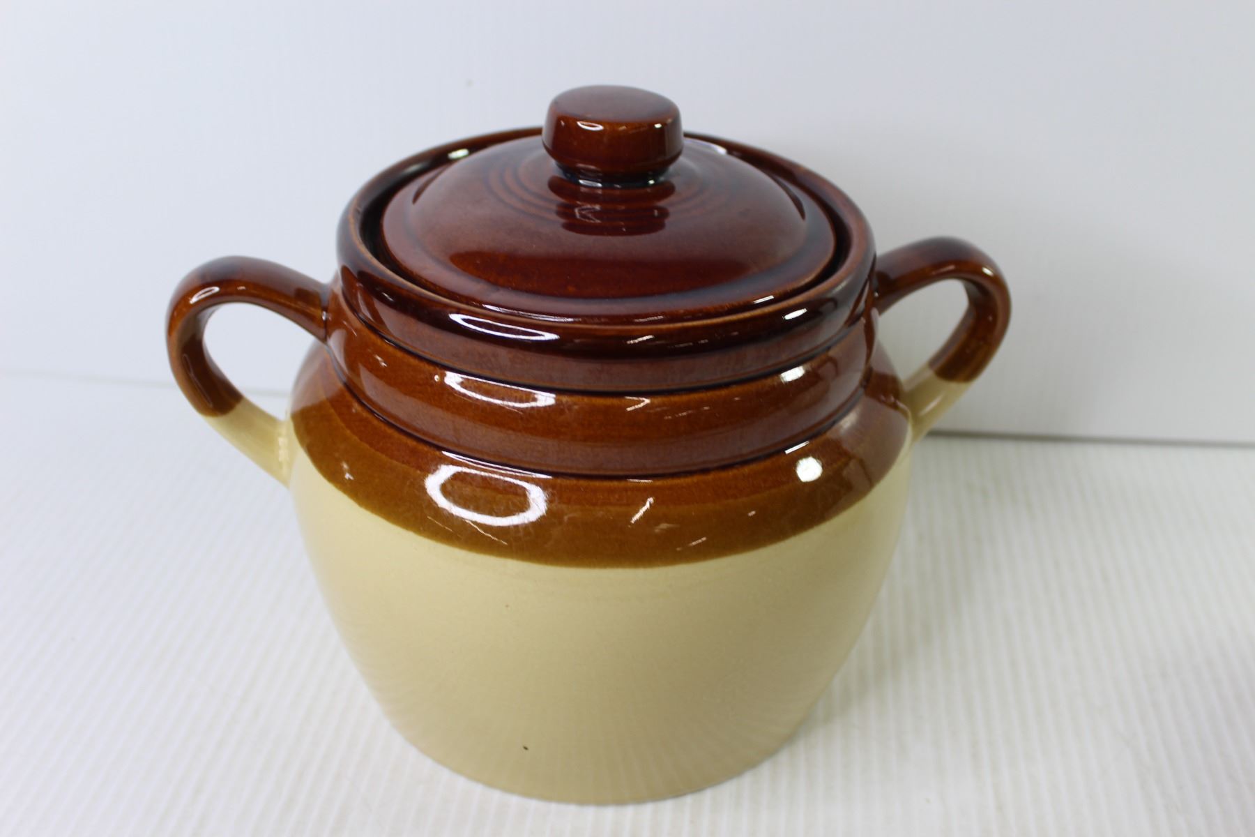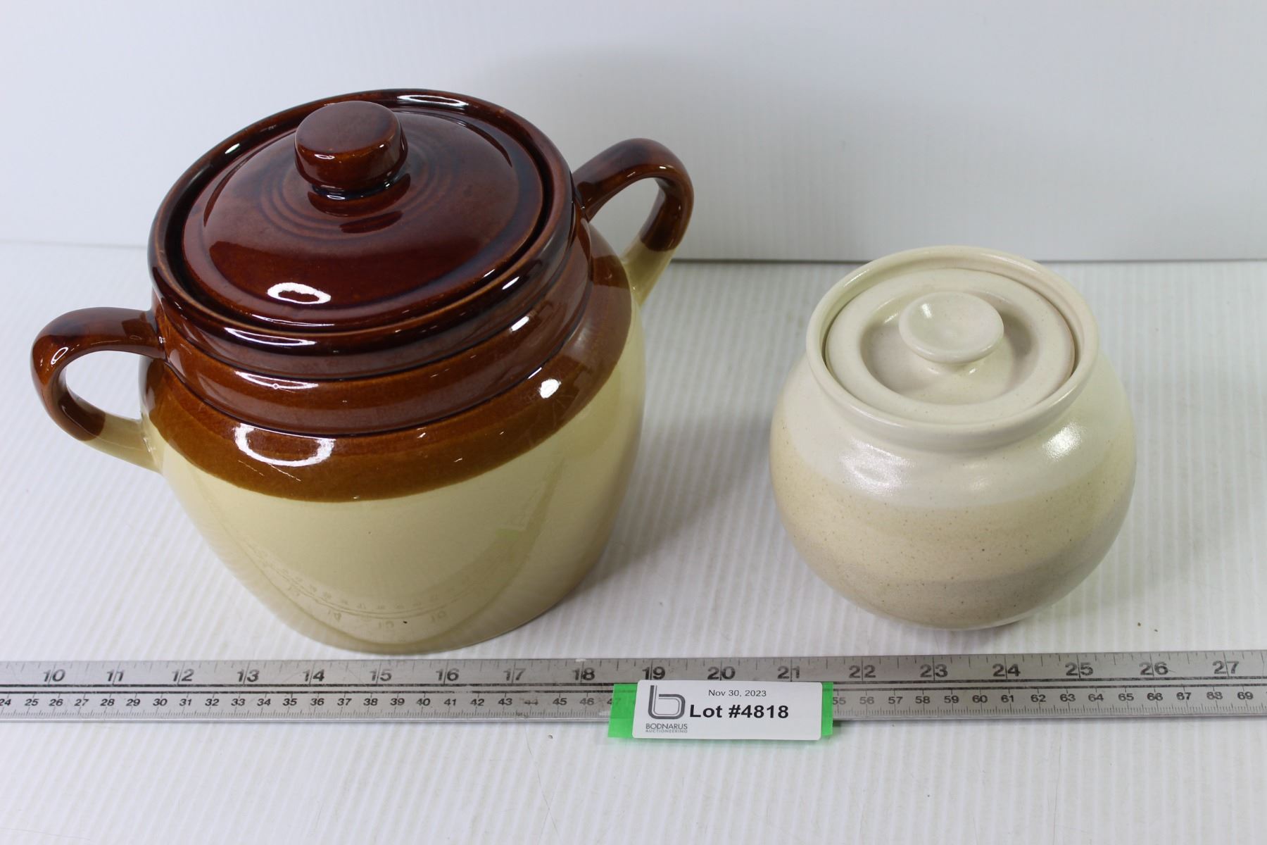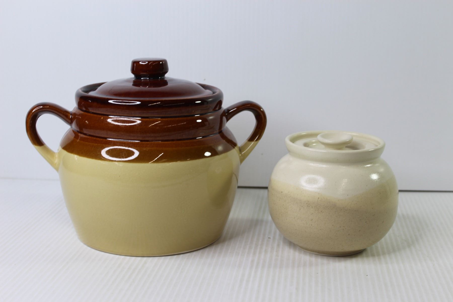 Bean Crock w/Lid - Stoneware Jar w/Lid