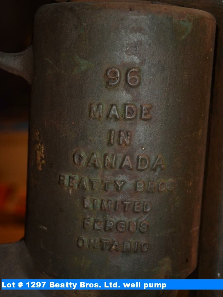 Beatty Bros. Ltd., Fergus Ontario Canada, well pump with wooden handle - unpainted original with dow