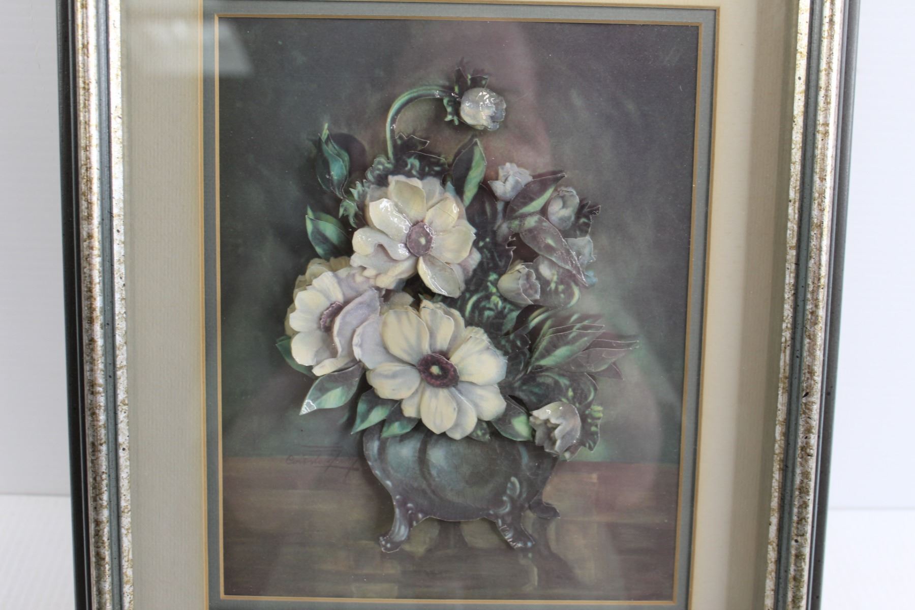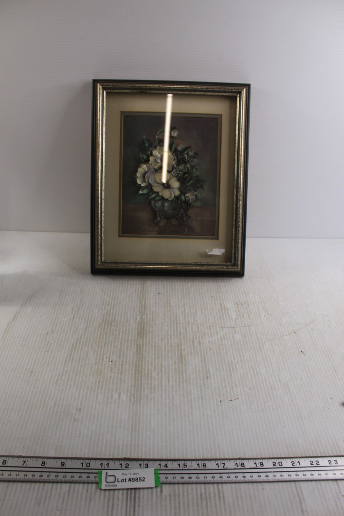 Beautiful Framed Metalworks vase & Flowers - 13" x 16"