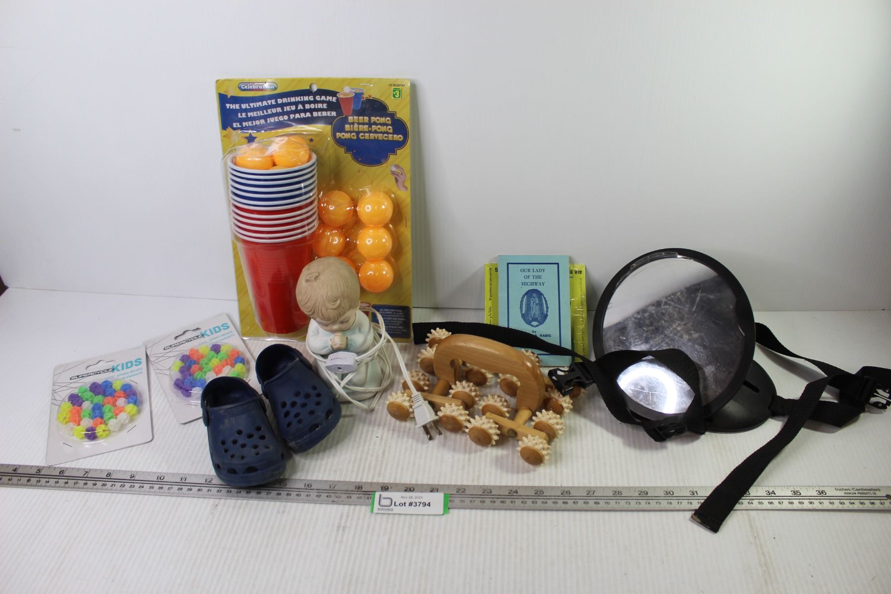 Beer Pong Game - Mirror on Stand - Massage Rollers - Bicycle Spoke Beads - Kids Off Brand Crocks -(size 6) - Kids Praying Lamp