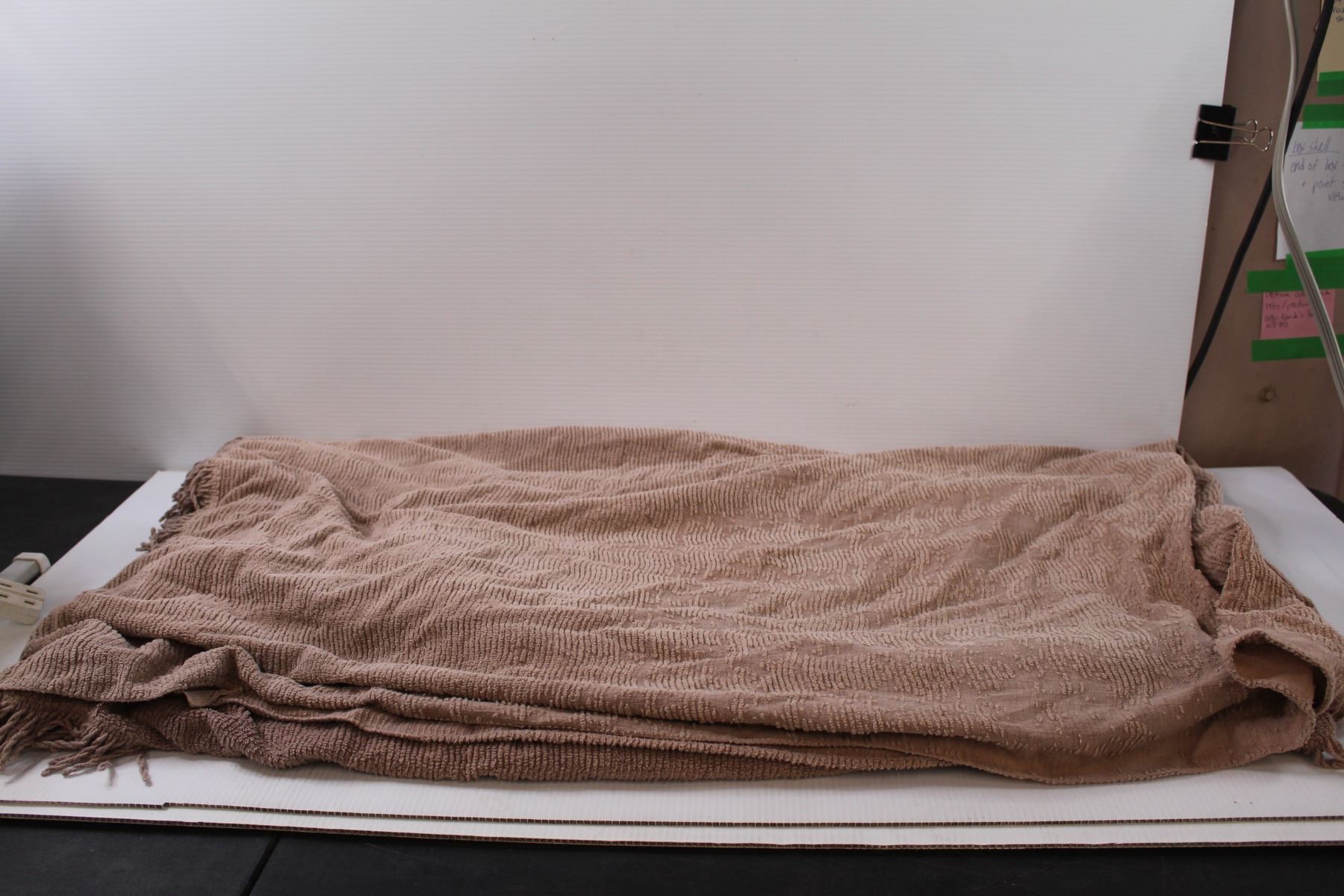 Beige throw blanket, 75"x 176", Some wear