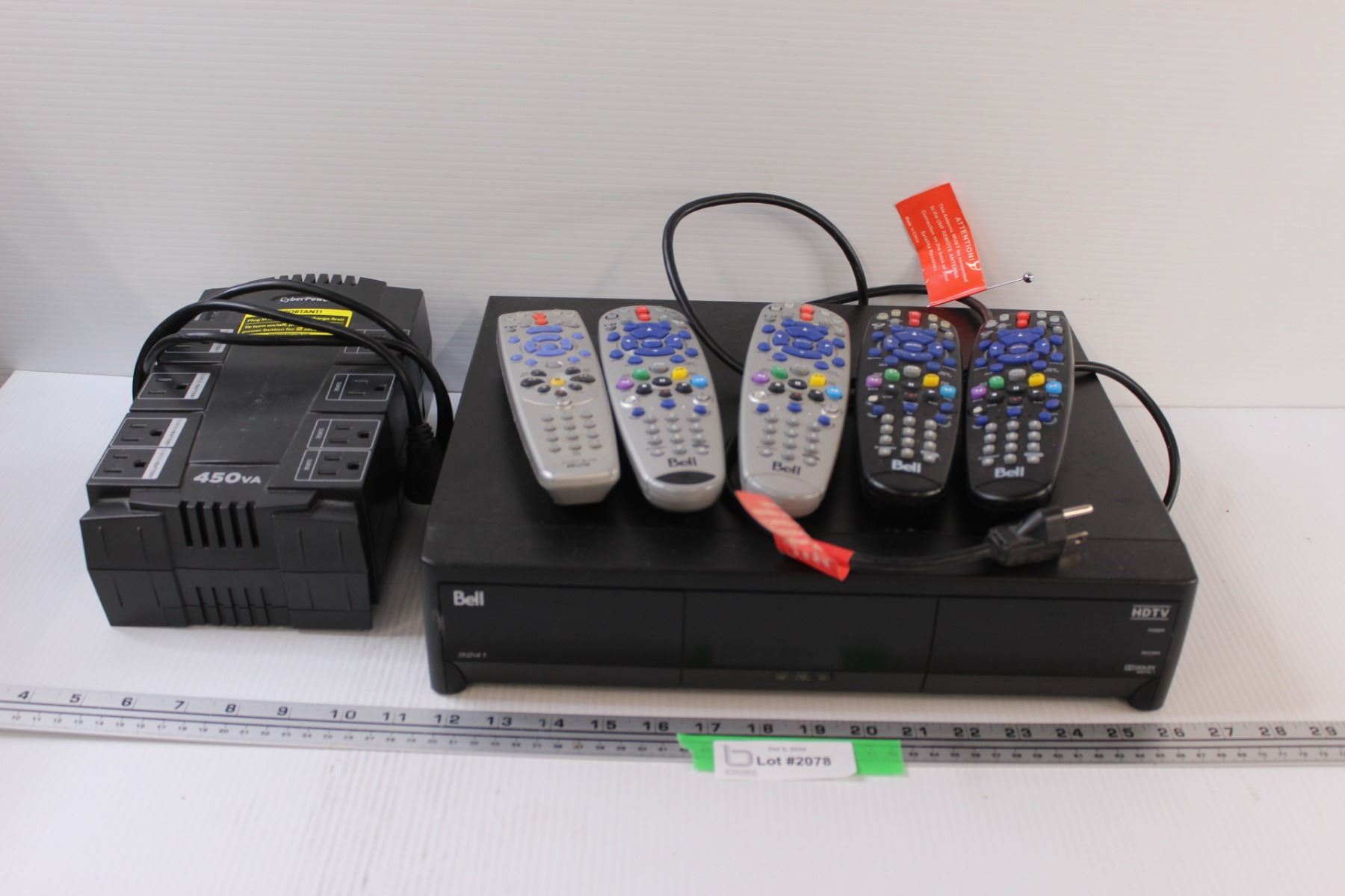 Bell HDTV Receiver (Powers On) & (5) Remotes & Surge Protector (as is)