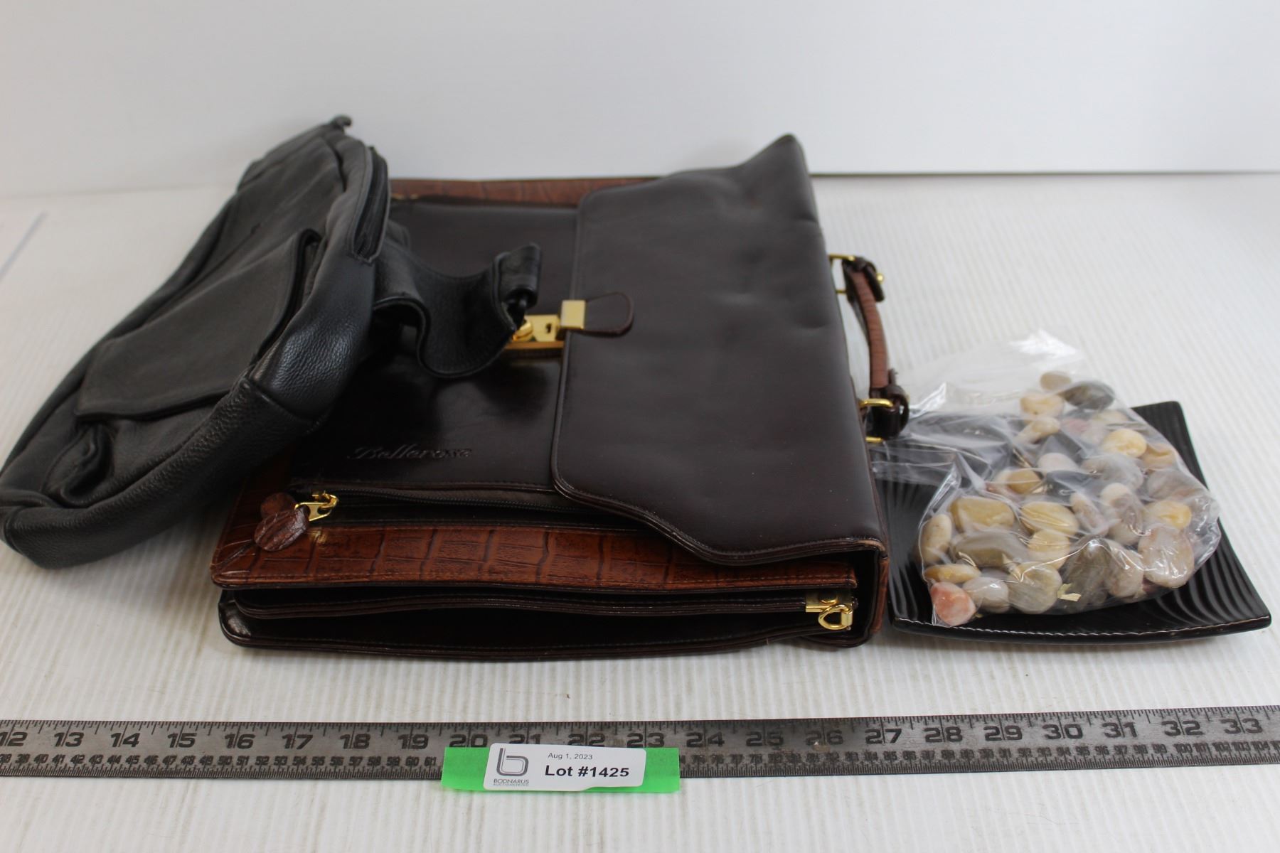 Bellrose Laptop/Tablet Bag, Display Plate, Polished Rocks, Leather Bag