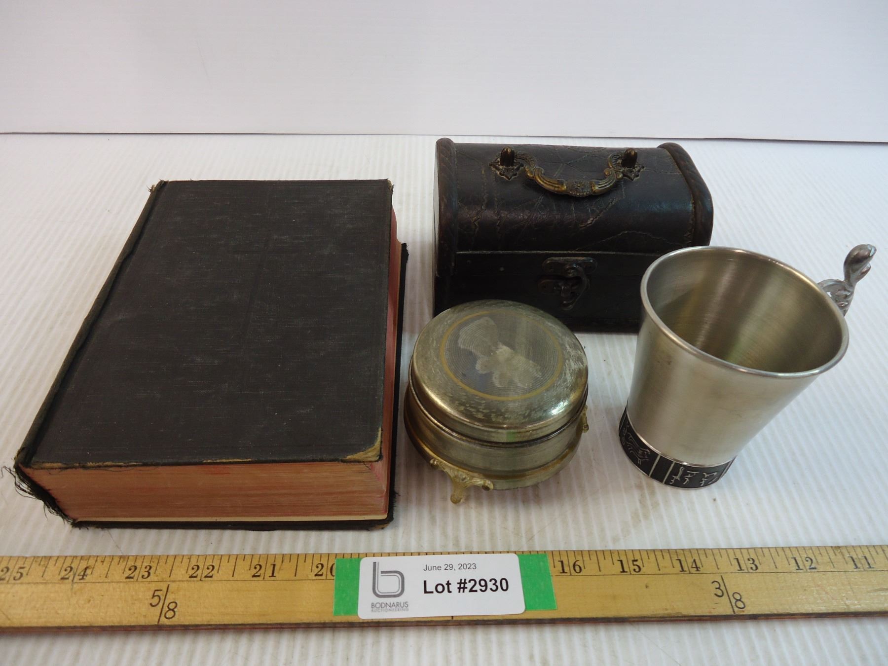 Bible/Leather Box/Norwegian Pewter Mug and Ashtray