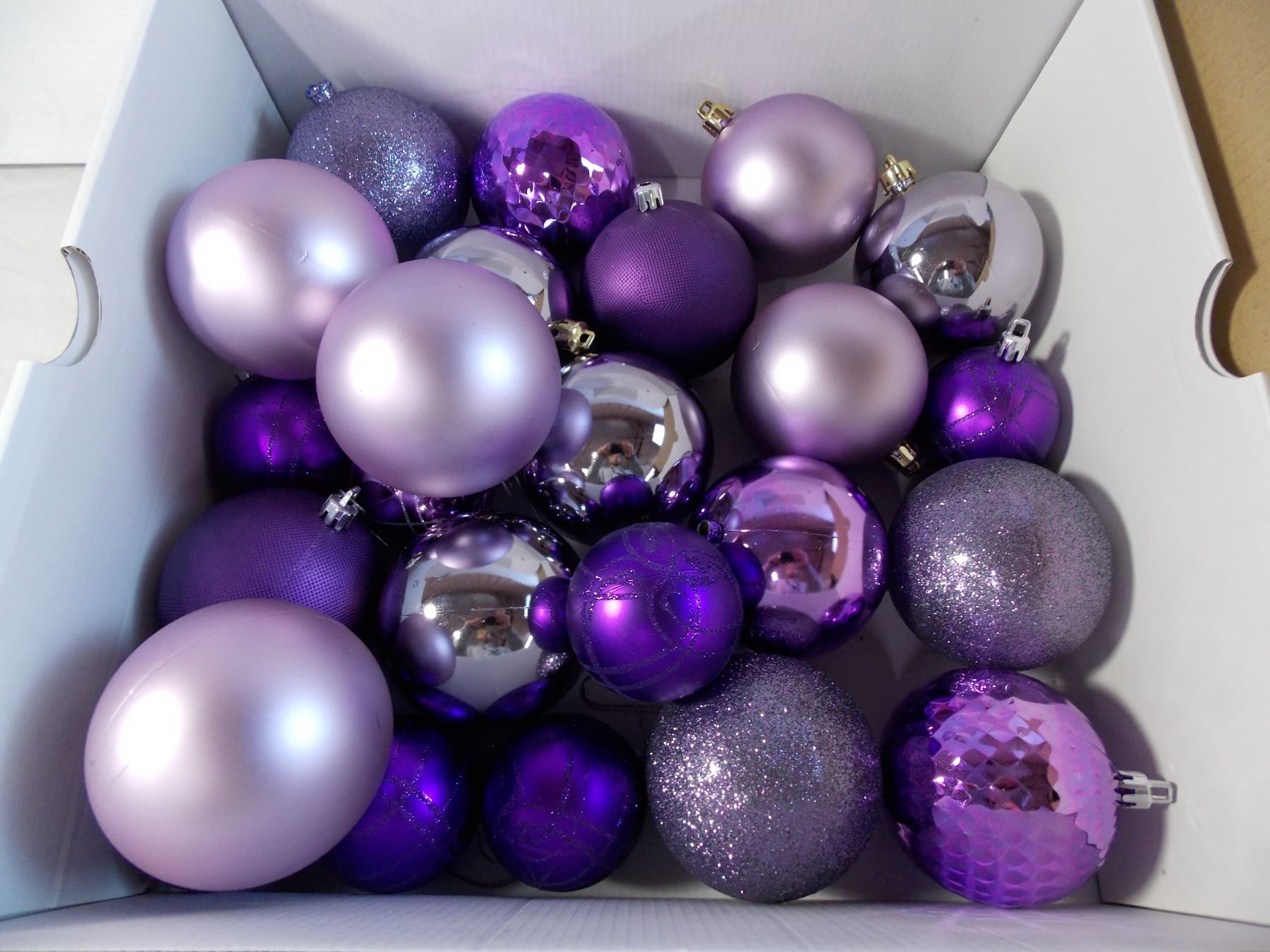 *Big Box of copper colored christmas bulbs + box of purple bulbs