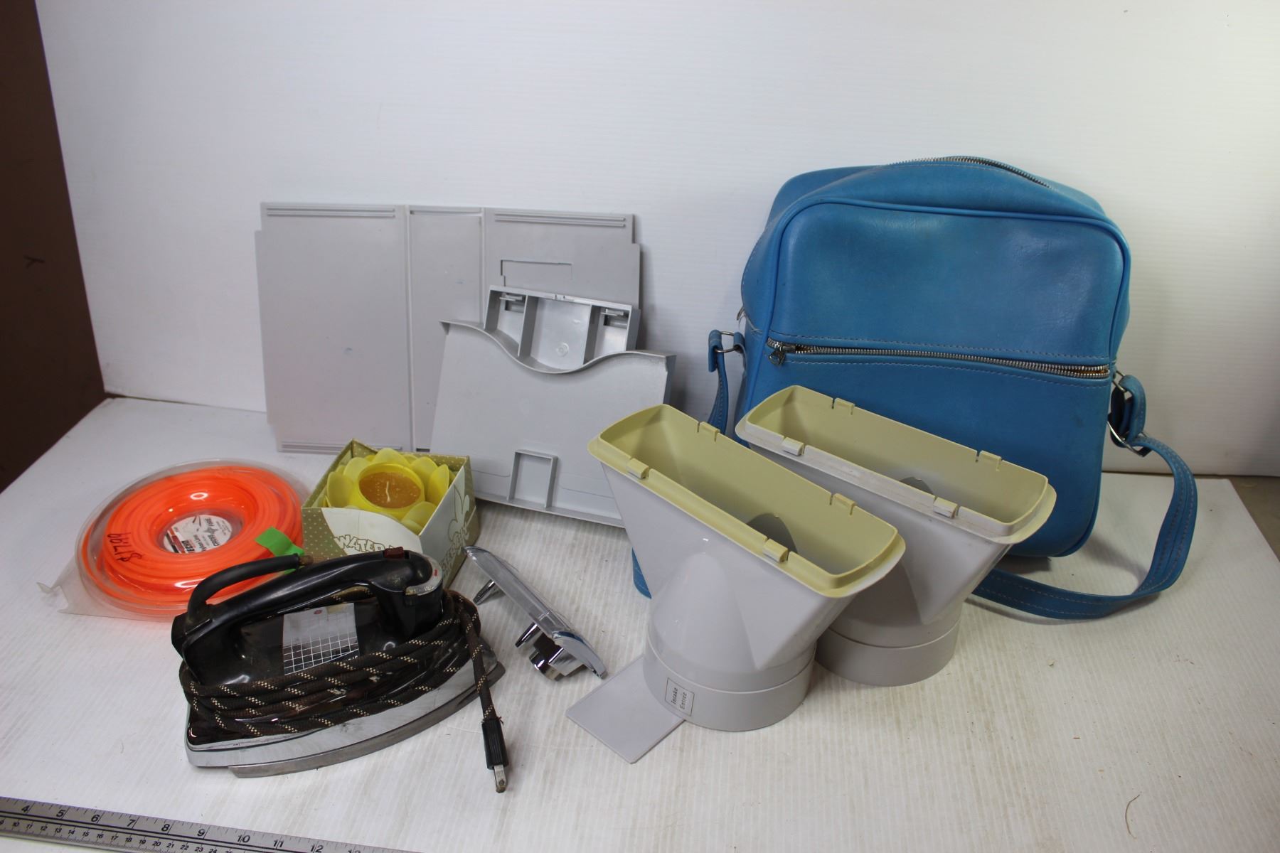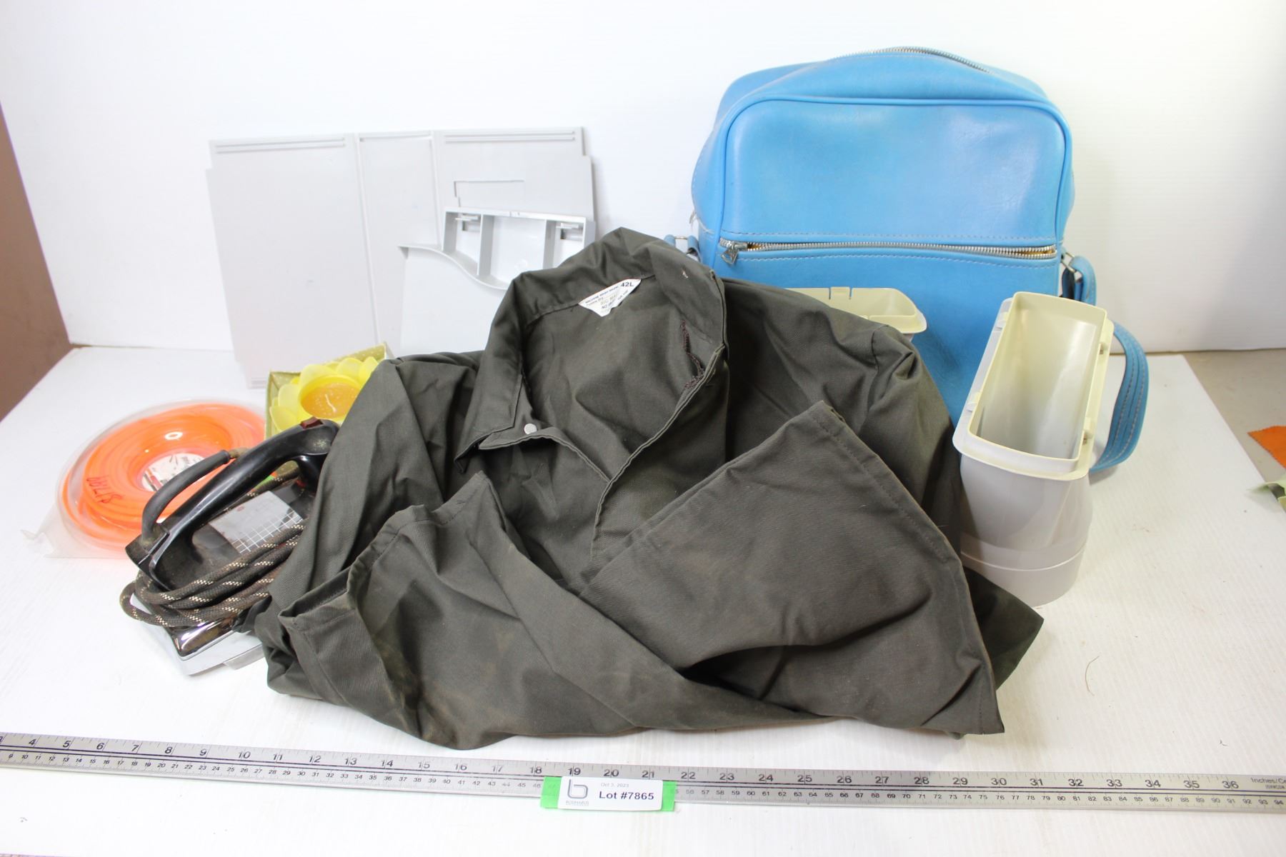 Big Mac JC Penny Men's 42L Coveralls - Blue Carry Case - Vintage Iron - Candle - Echo Nylon Line - Misc. Unknown Plastic Pieces