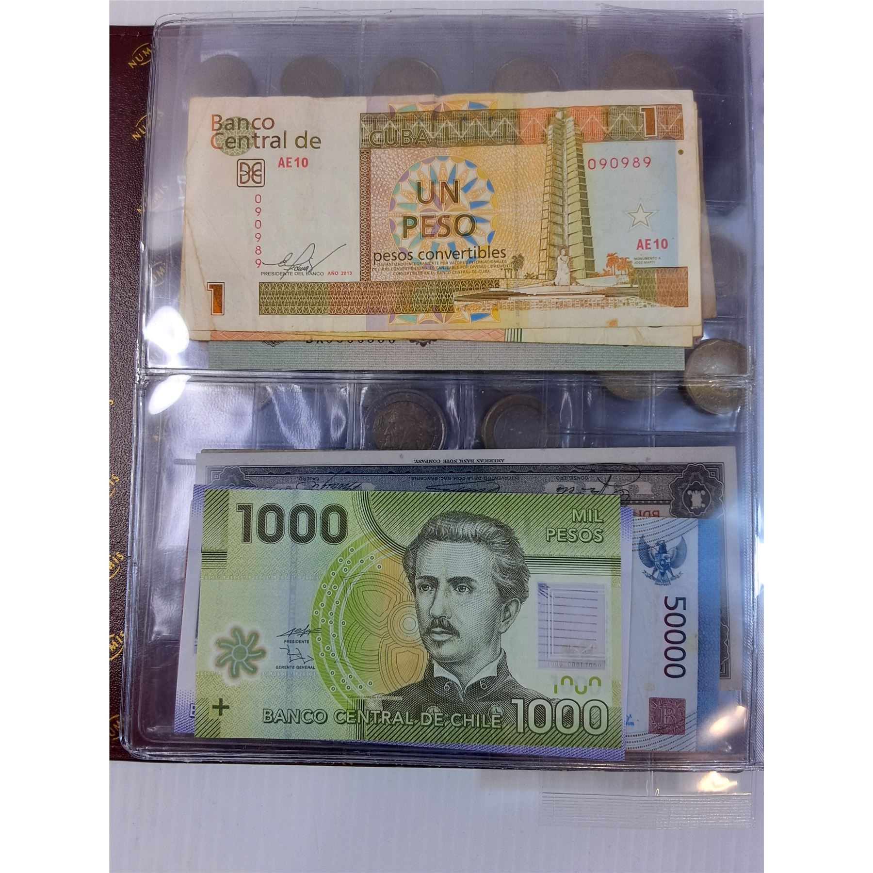 Binder w/Case: Foreign Paper Bills (Assorted) & Various Token/Coins