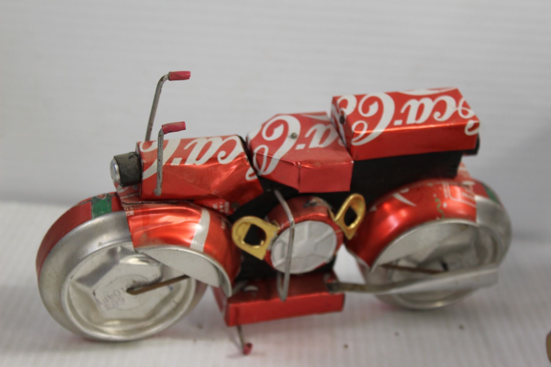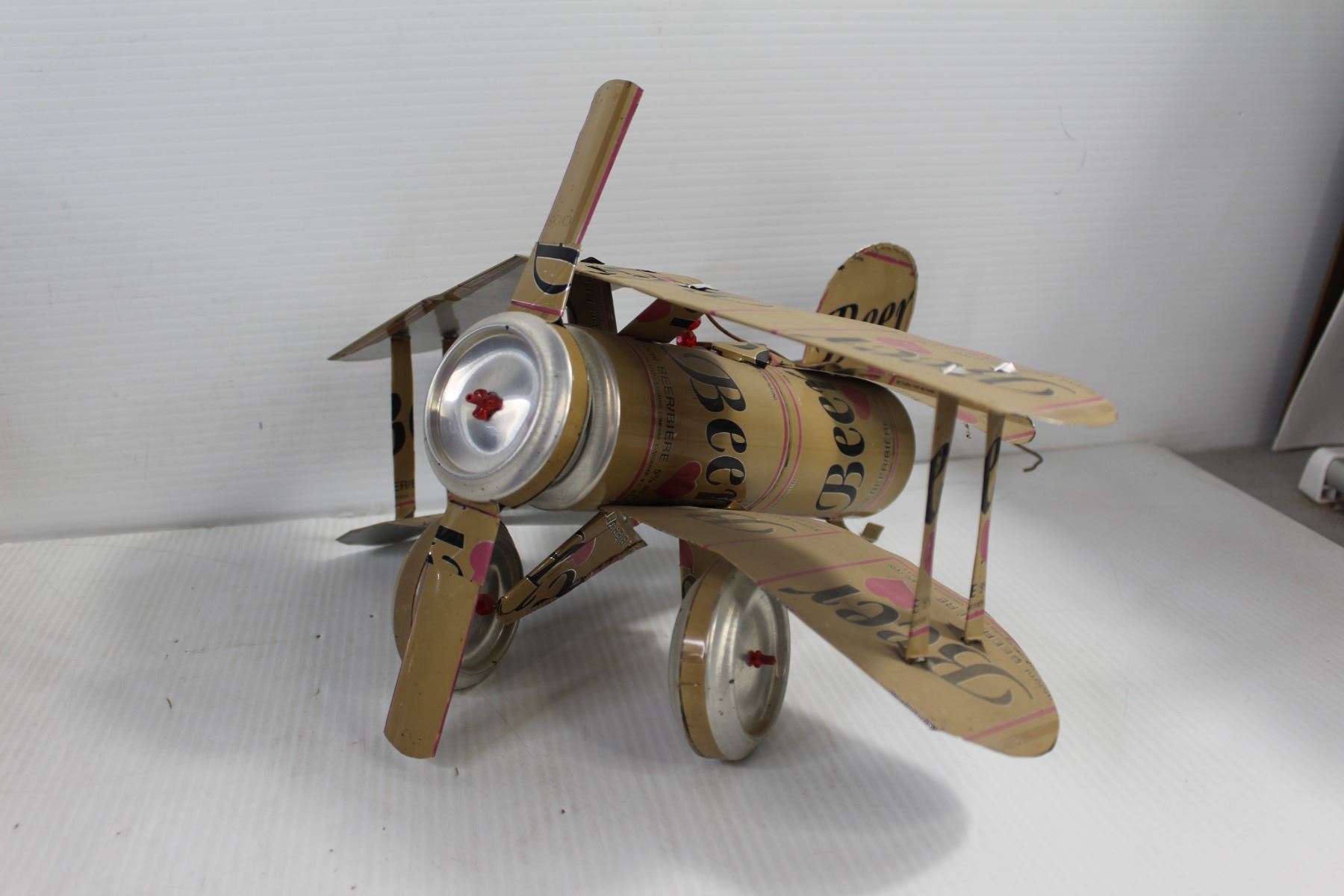Black Crate, Bongos - One with a big crack, Ice Fishing Scoop, Plane and Bike Made out Of Cans, Pump