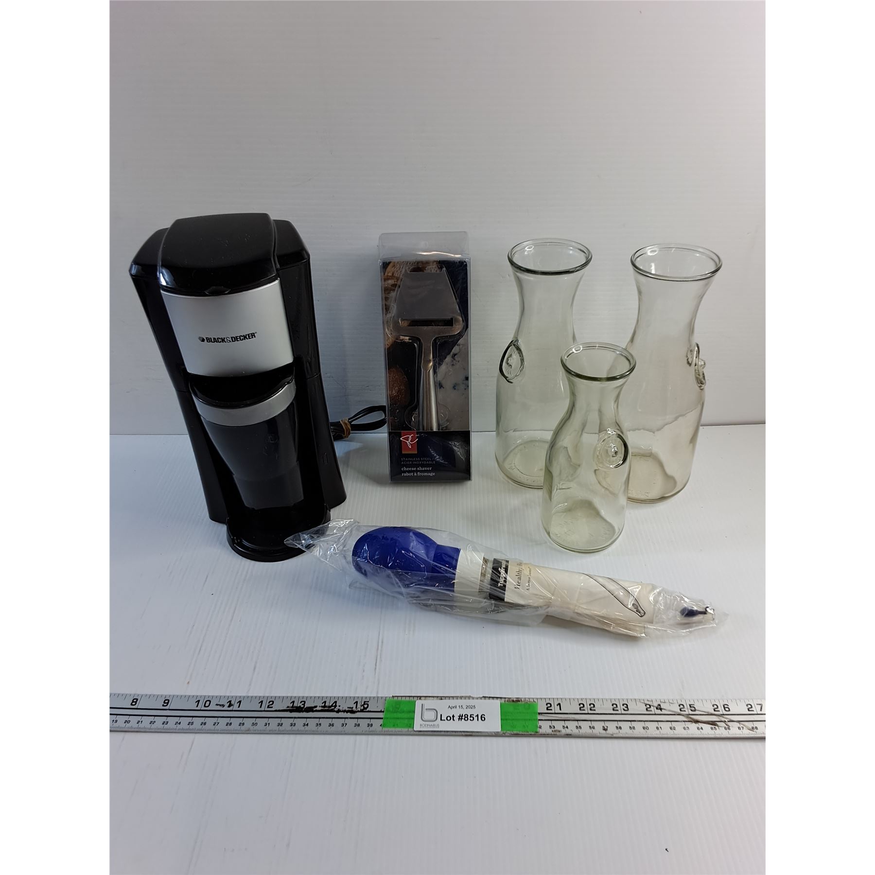 Black & Decker Coffee Maker, Cheese Shaver, Tupperware Baster and (3) Milk Bottles