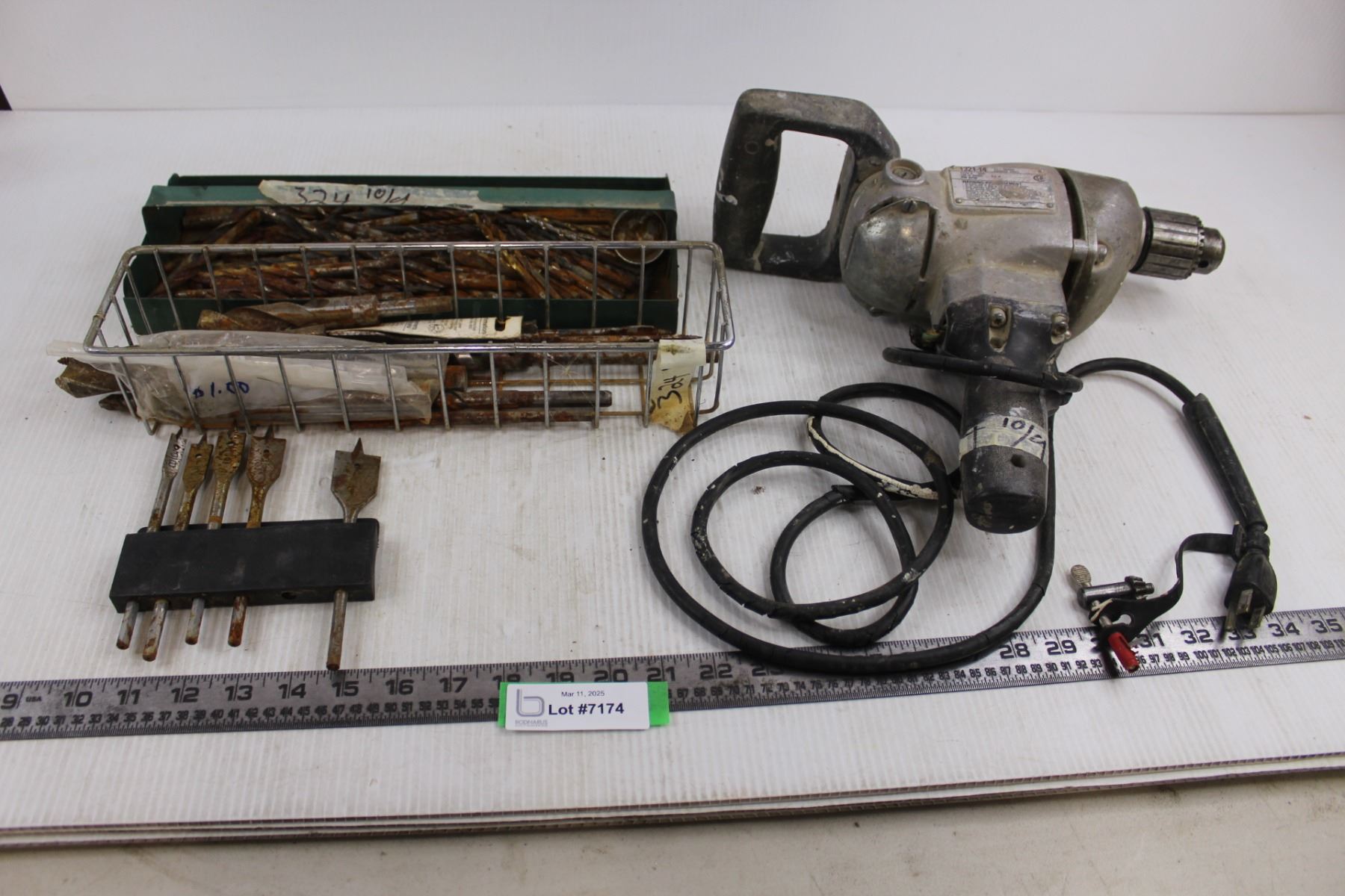 Black & Decker Professional 2-Hand Drill 1321-14 - Tested - Power Cord Cracked, Assorted Drill Bits - As is