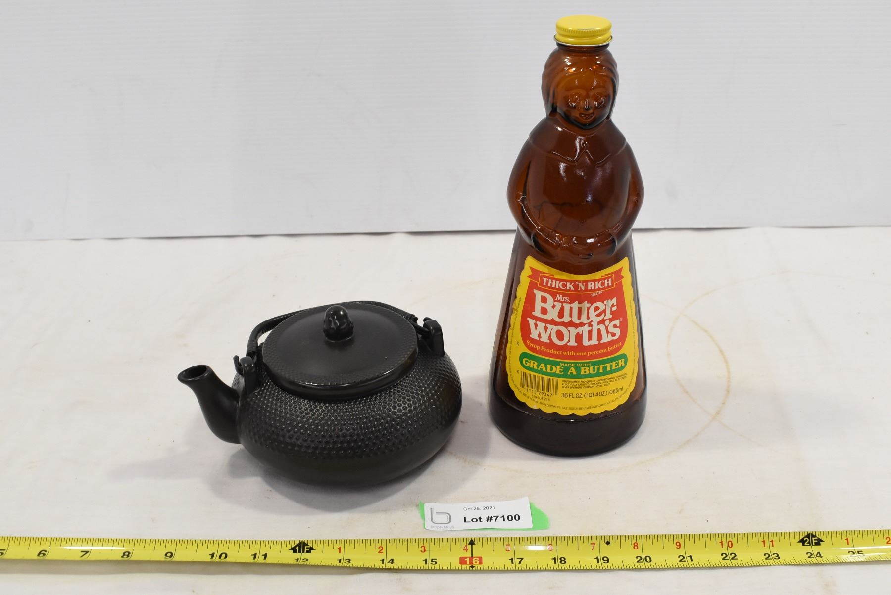 Black Tea Pot & Mrs. Buttersworth’s Glass Bottle