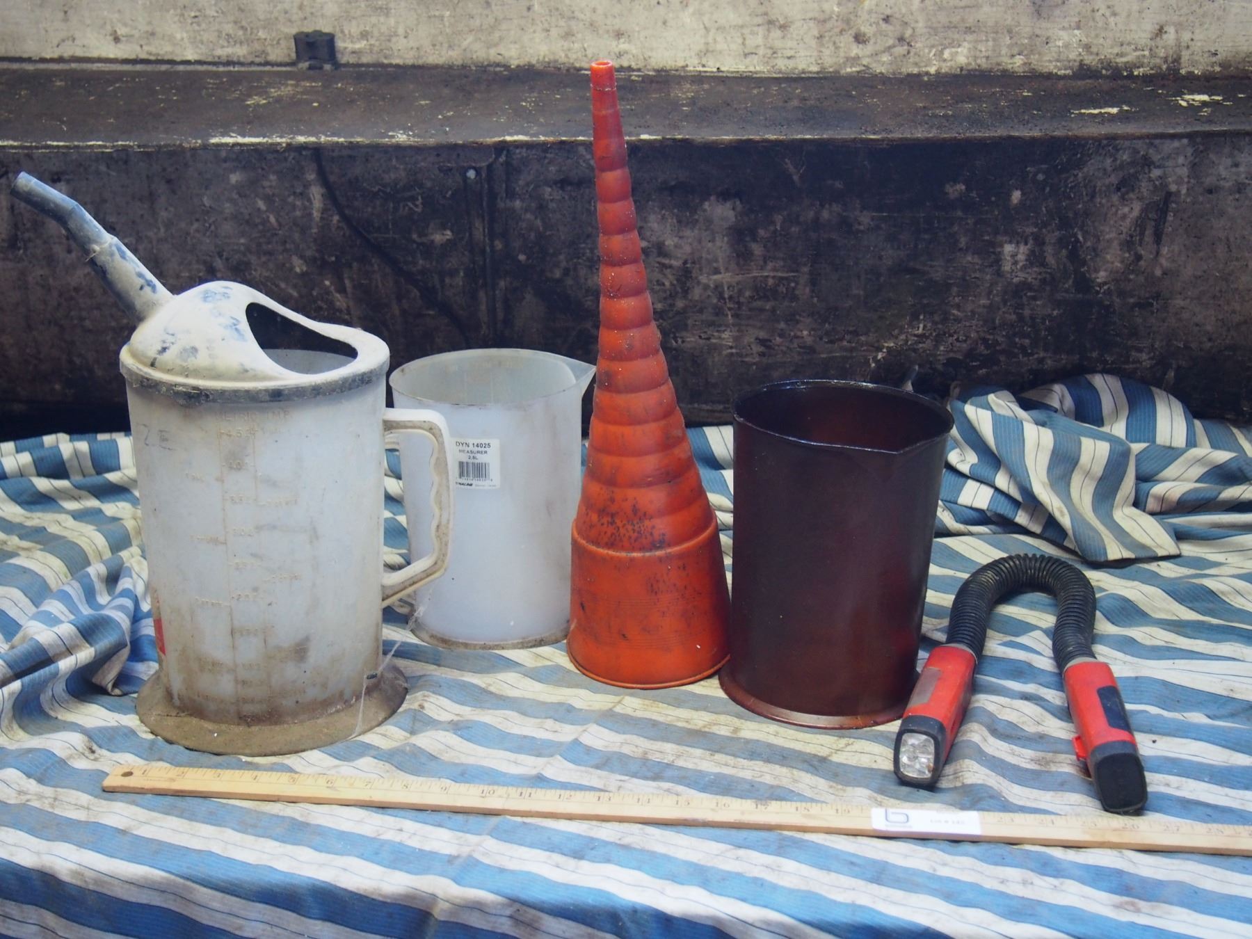 Black and Decker Folding Light, Oil Funnel and Oil Containers