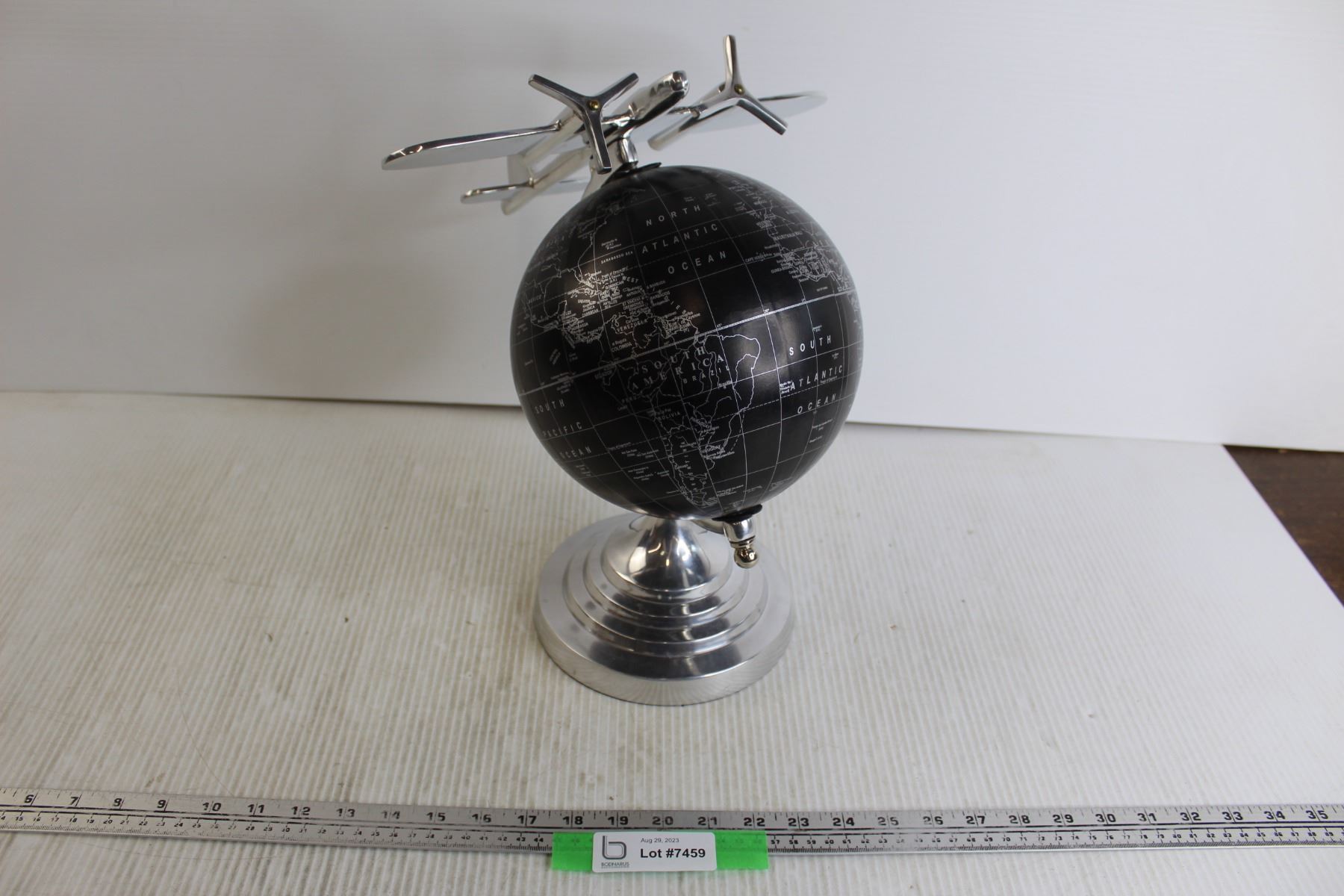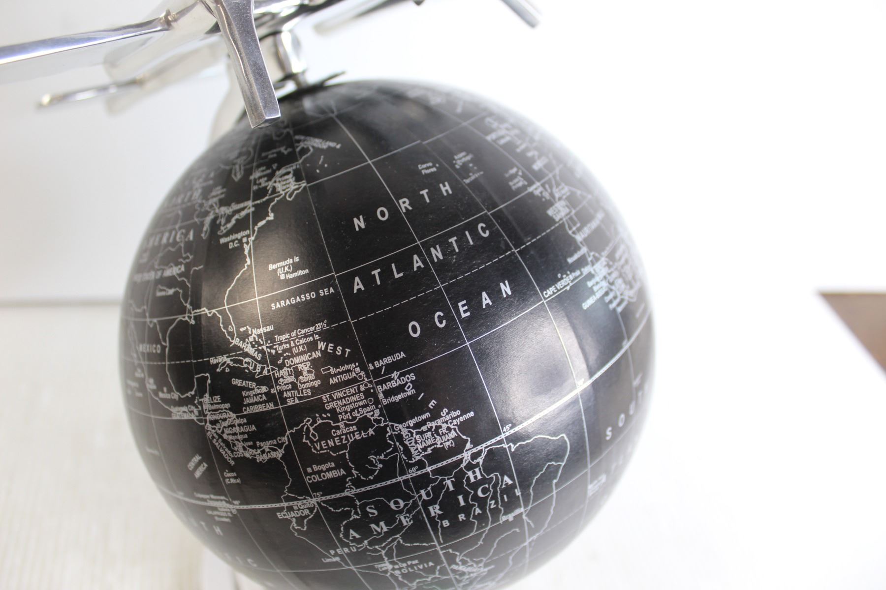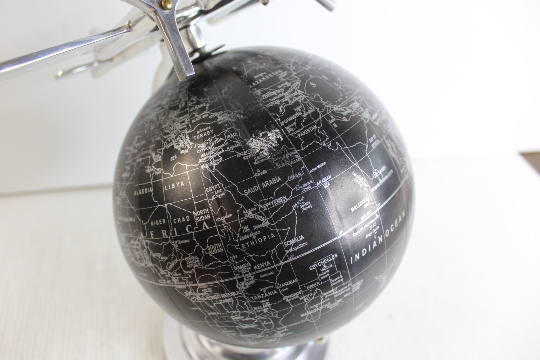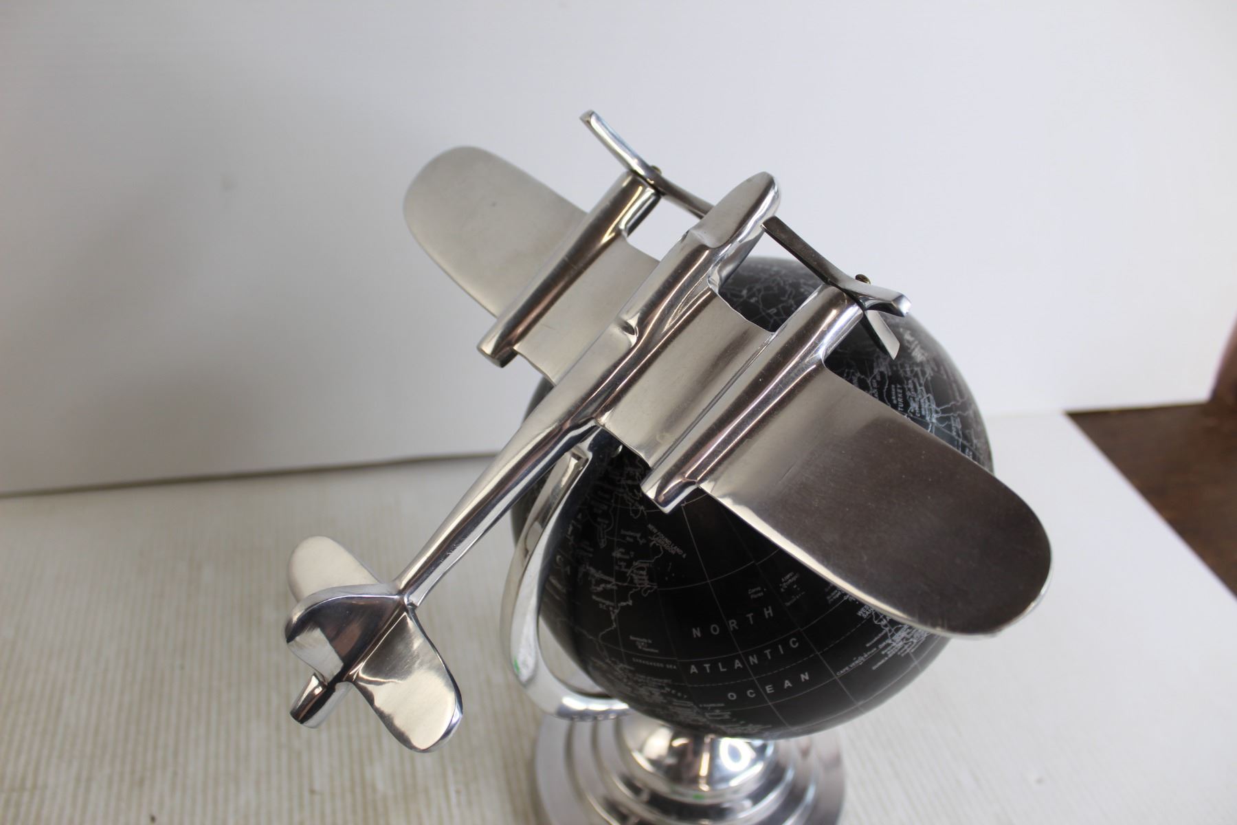 Black and Shiny Grey Globe with Airplane Decoration