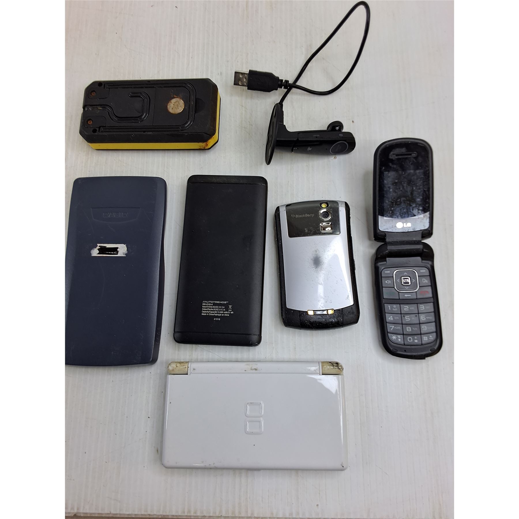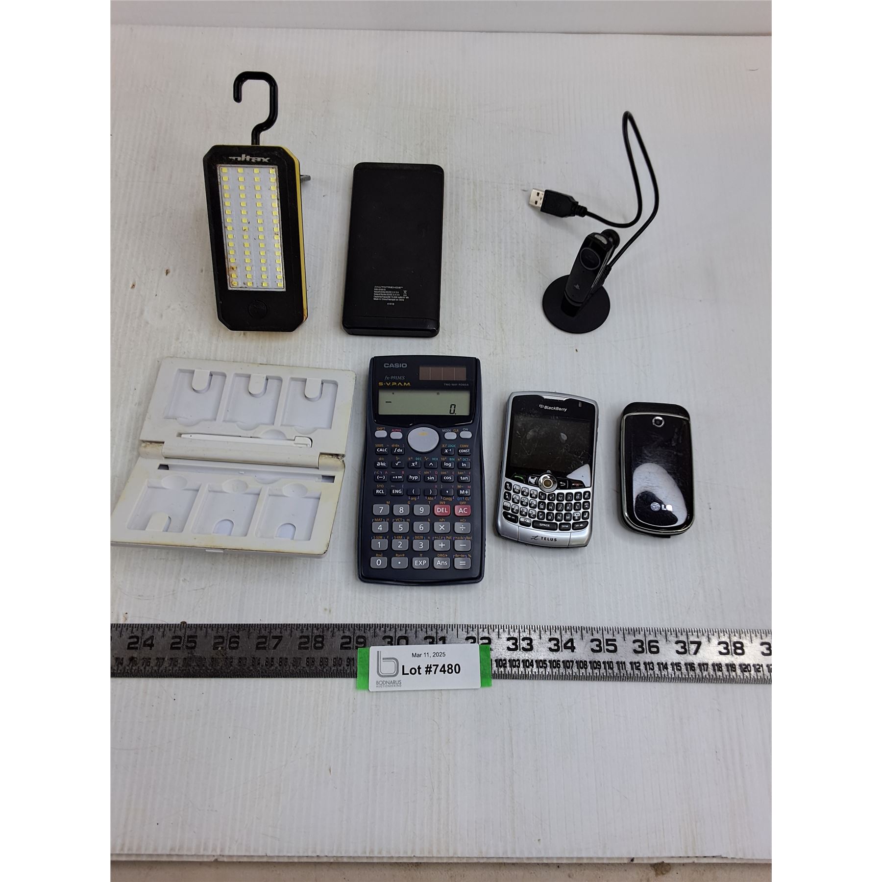 Blackberry & LG Flip Phones, Casio SP Scientific Calculator, LED Light, Powerbank, PS Microphone