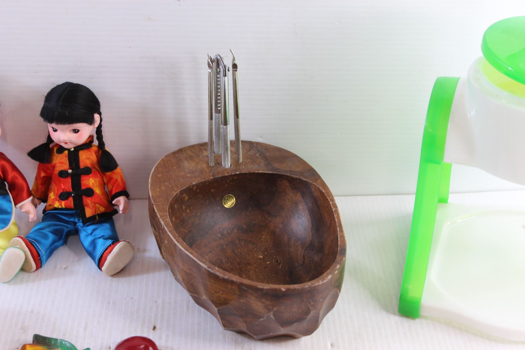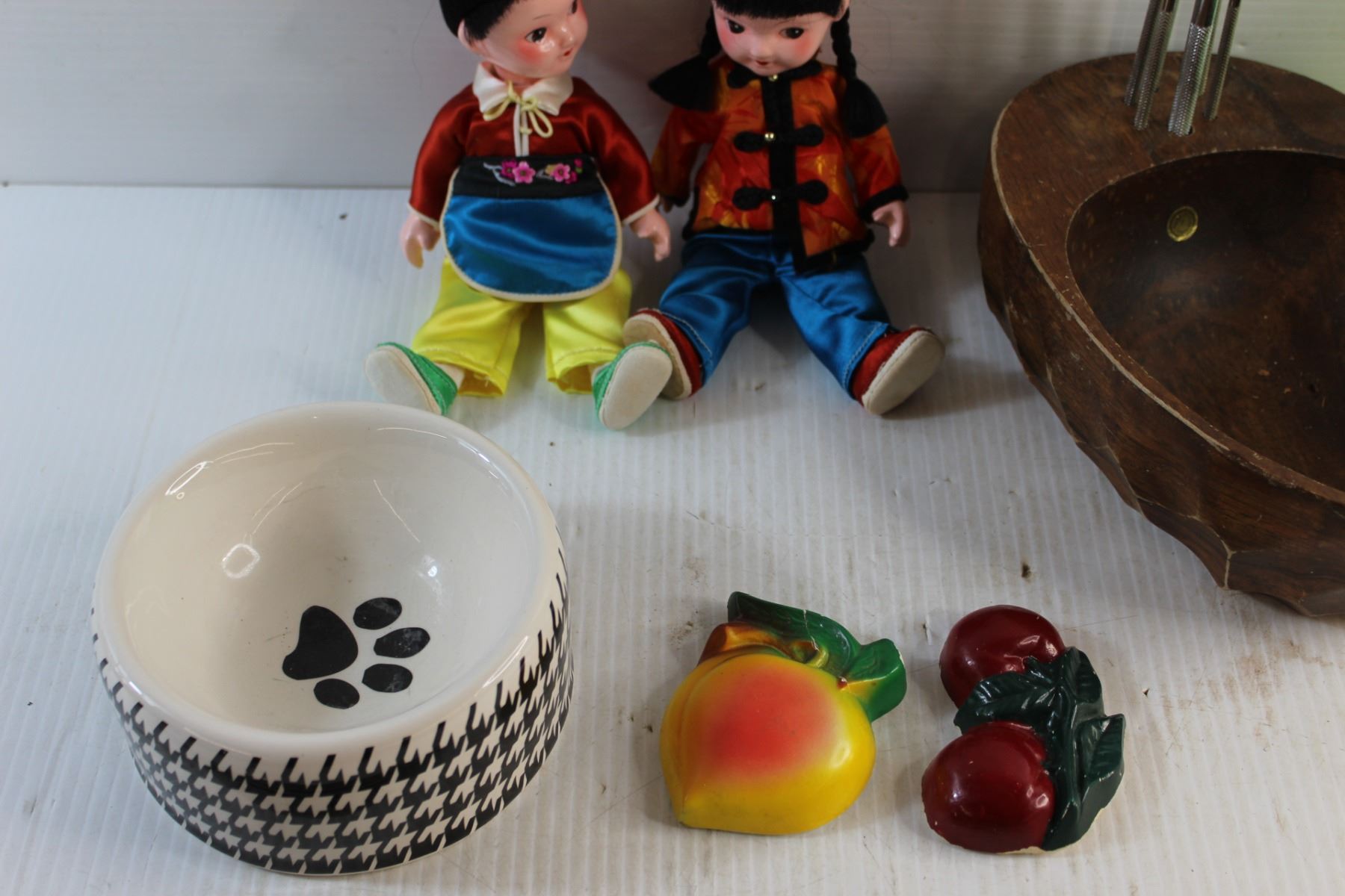 Block Ice Shaver, Ceramic Wall Fruit Decor, Nut & Pet Bowls and Chinese Porcelain Dolls