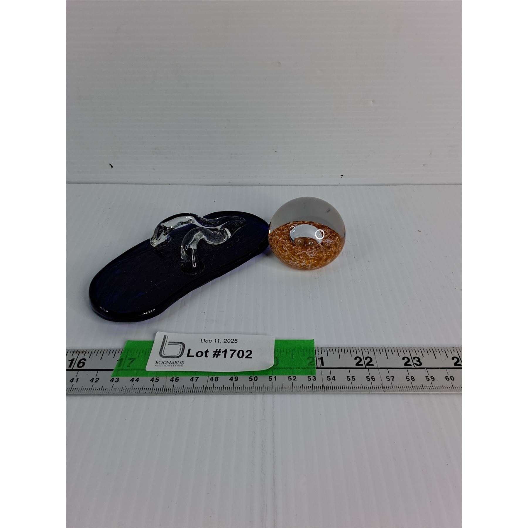 Blue Glass Flip Flop Paperweight, Handblown Glass Paperweight