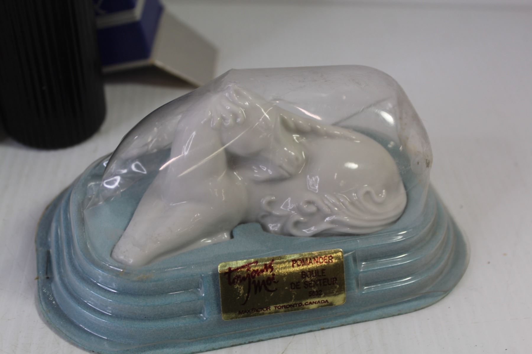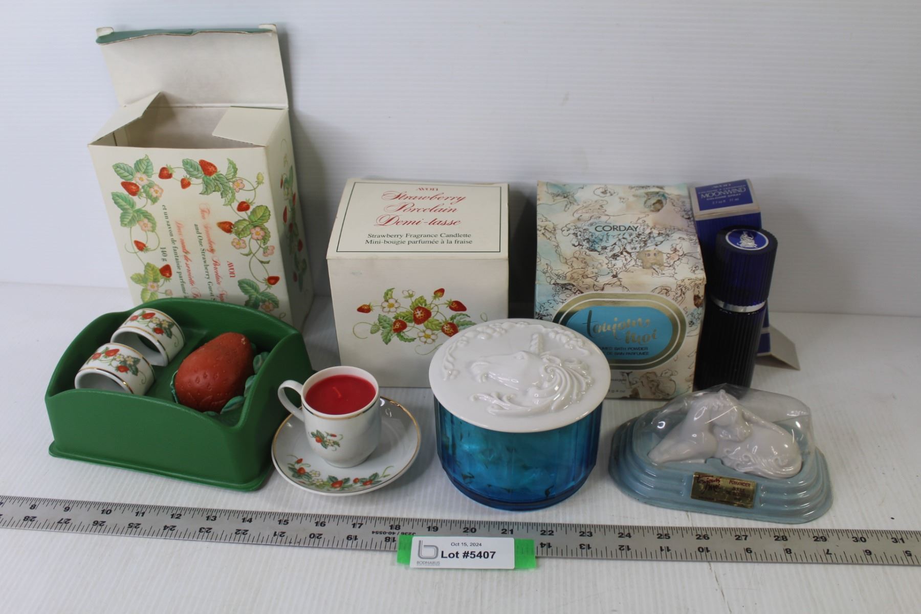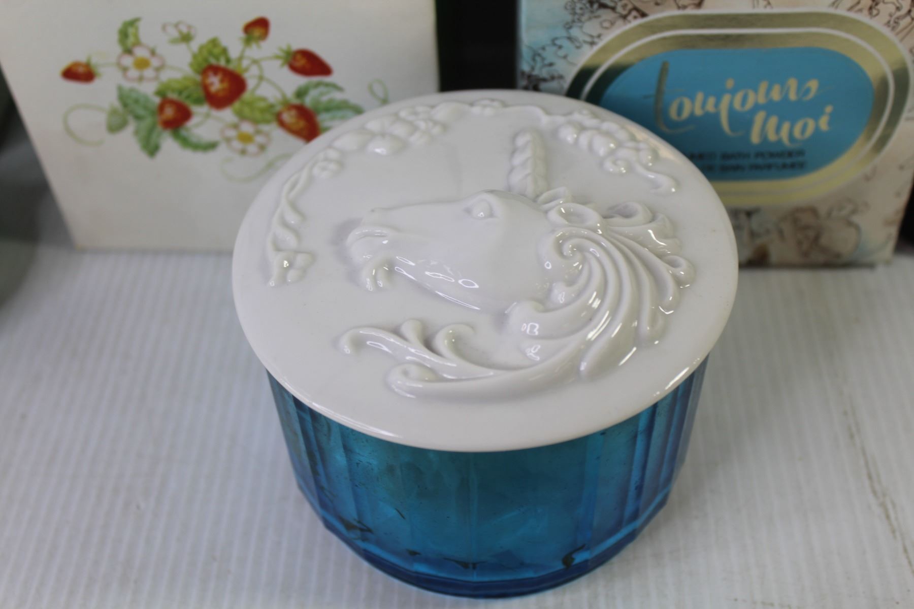 Blue Glass Powder Dish w/Ceramic Unicorn Lid - Perfume - Cup & Saucer Candle - Unicorn Powder Holder