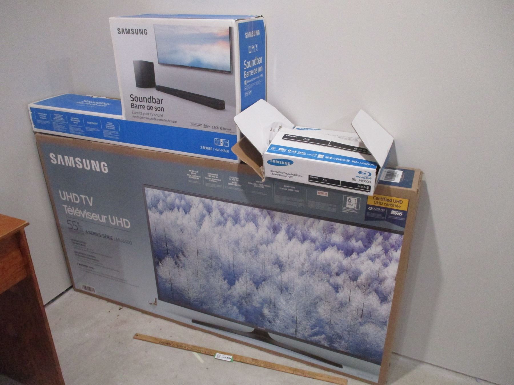 Blue Ray Disk Player with Sound Bar, Samsung 55" TV (NIB)