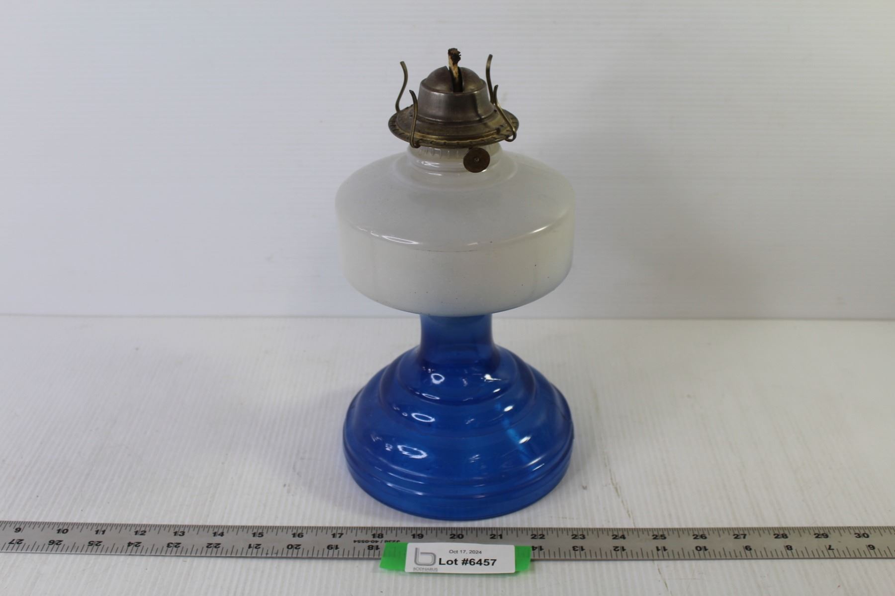Blue & White Glass Eagle Oil Lamp (no chimney)
