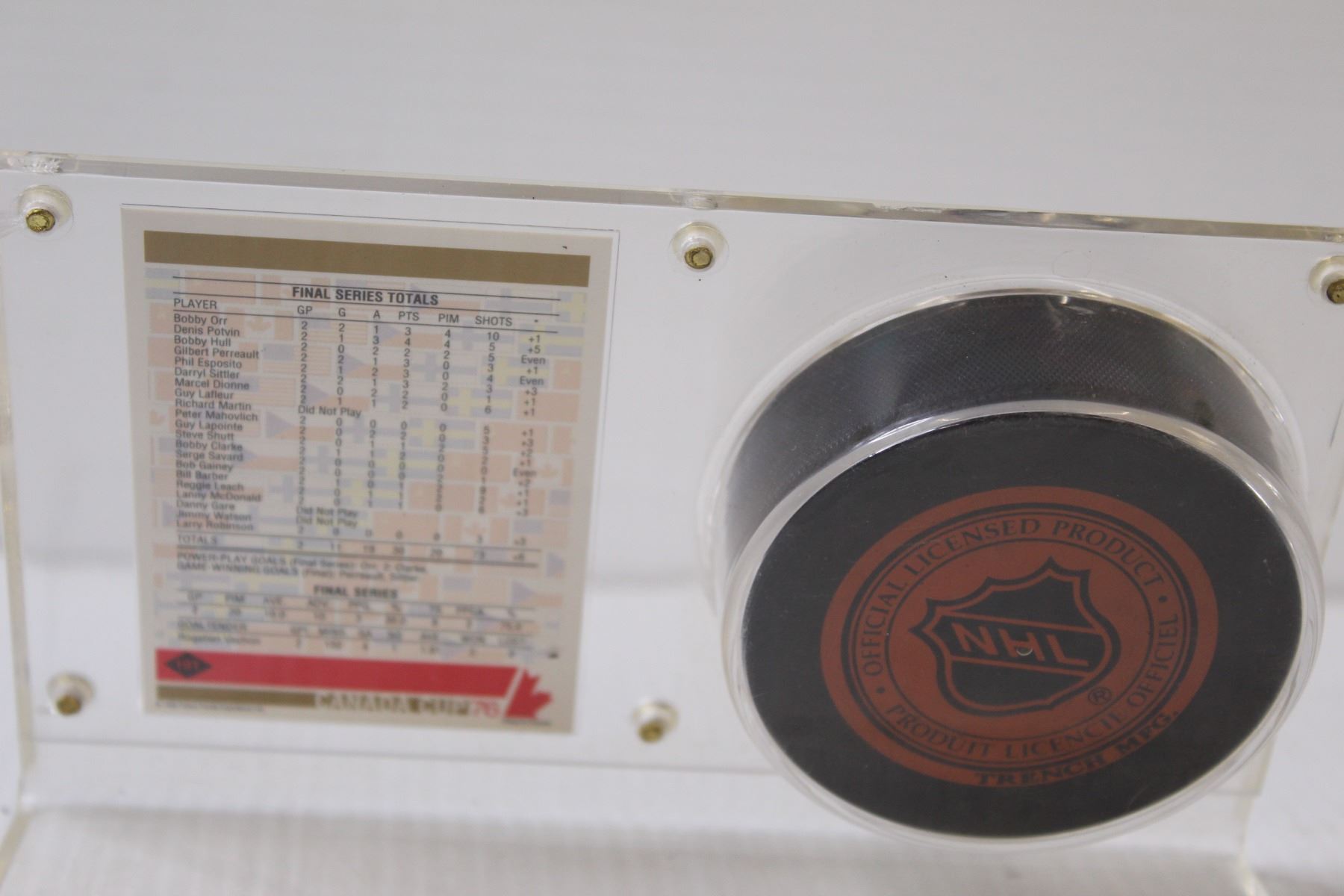 Chicago Blackhawks Framed Signed Hockey Puck & Trading Card in Frame