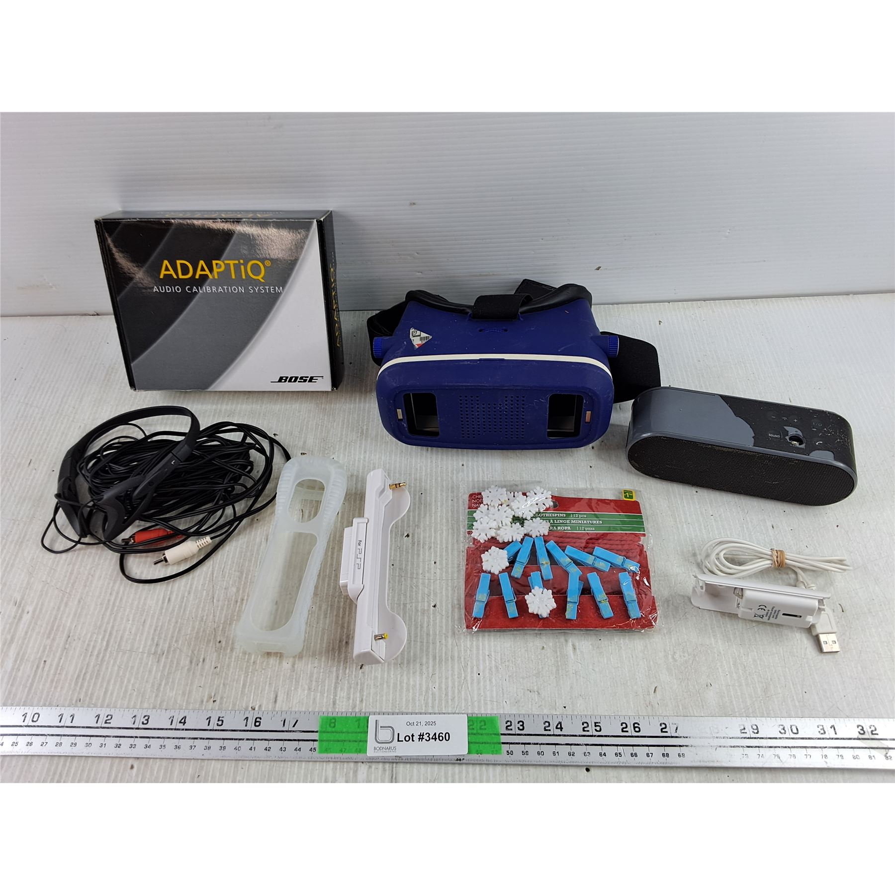 Bose Adaptiq Headphones, Smartphone VR Helmet, Portable Speaker, Clothespins, Misc