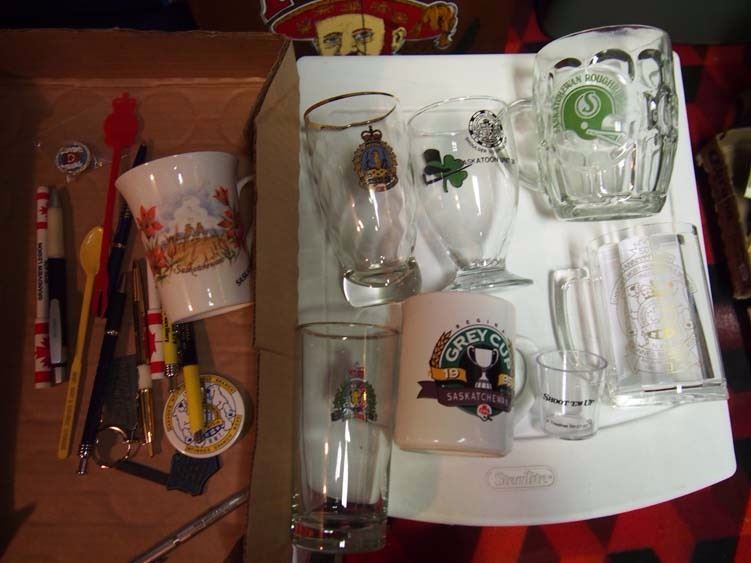 Box Full Of Advertising Items, Grey Cup, Roughriders, Army, Alaska, Mounted Police