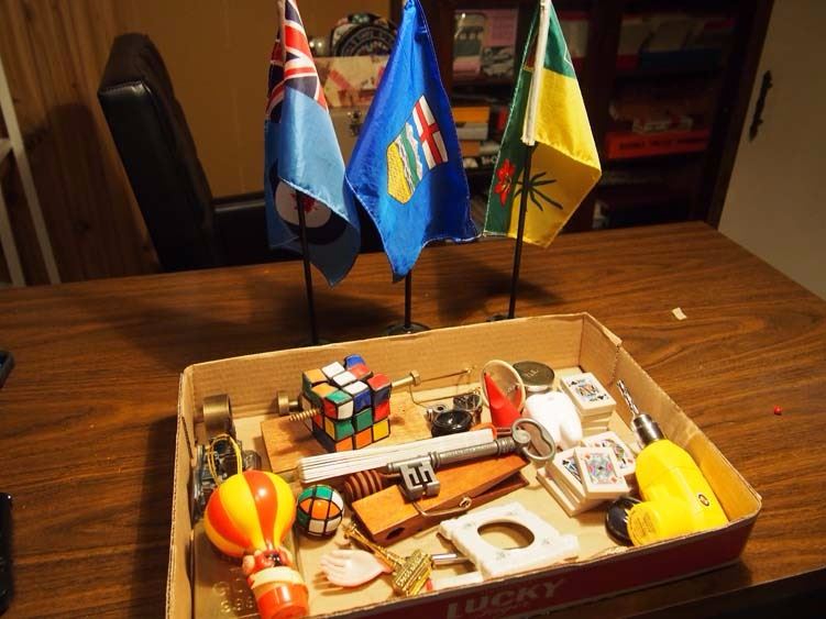Box Full Of Office Items, Playing Card Erasers, Desk Flags