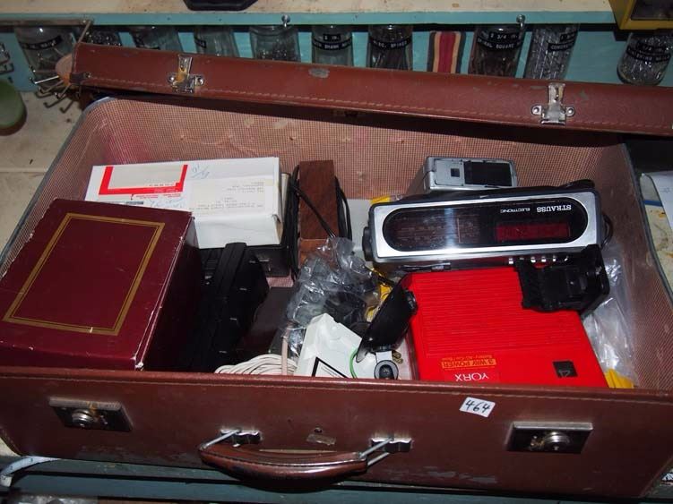 Box Full Of Old Electric Items, 8 Track Player, Clock