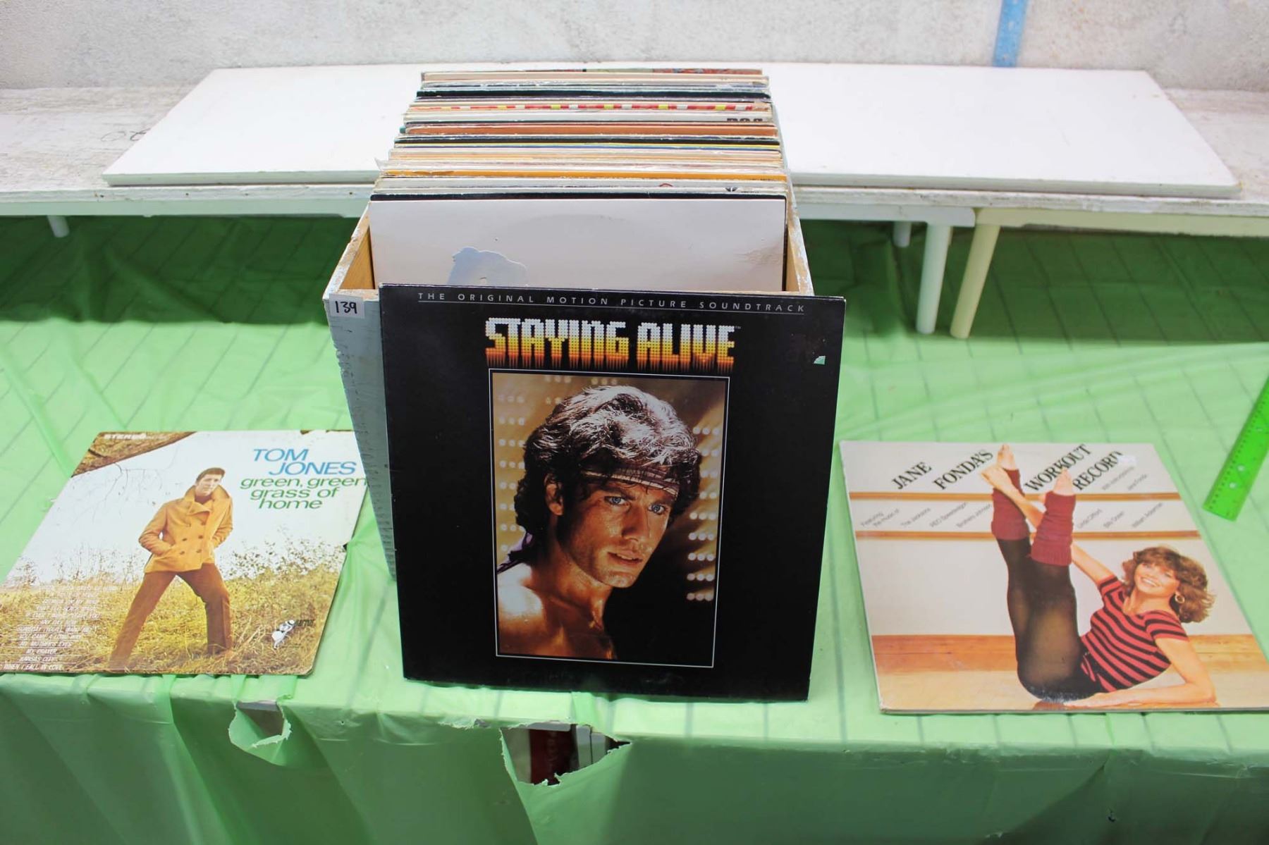 Box of Misc Records (Jane Fonda. Tom Jones, Staying Alive, Etc;)