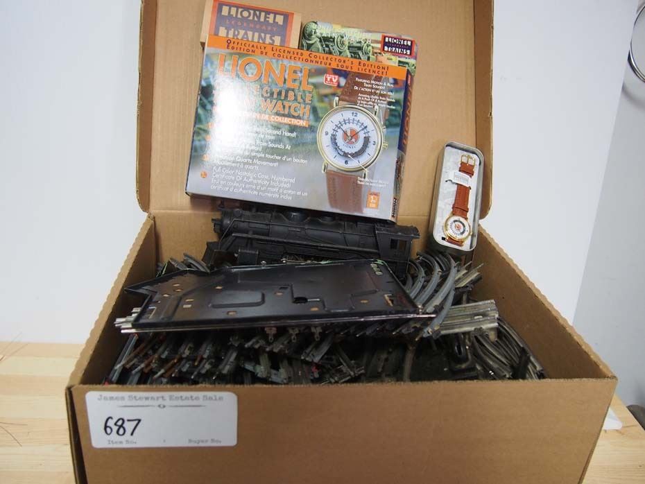 Box of Train Tracks / Lionel Collectors Watch / Engine
