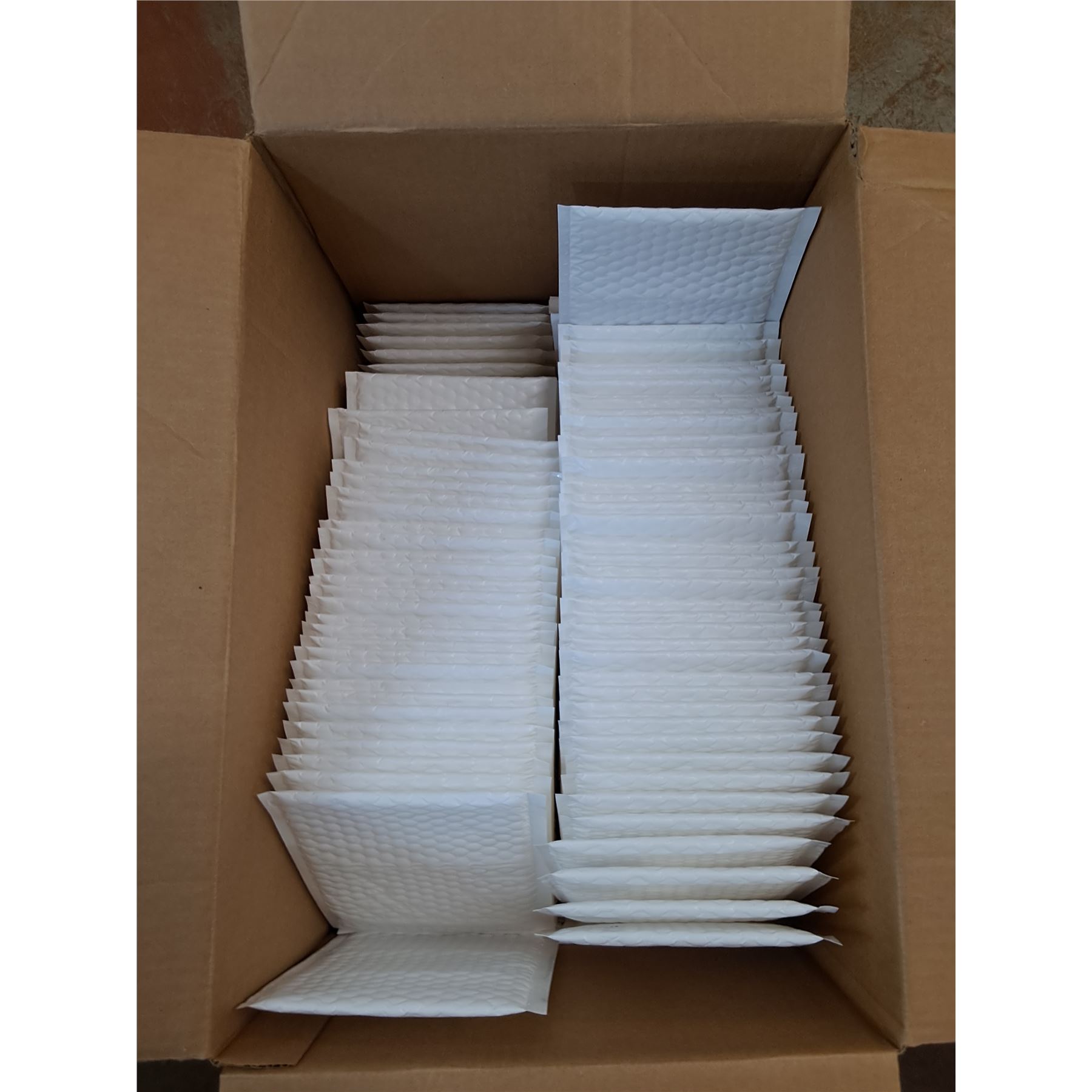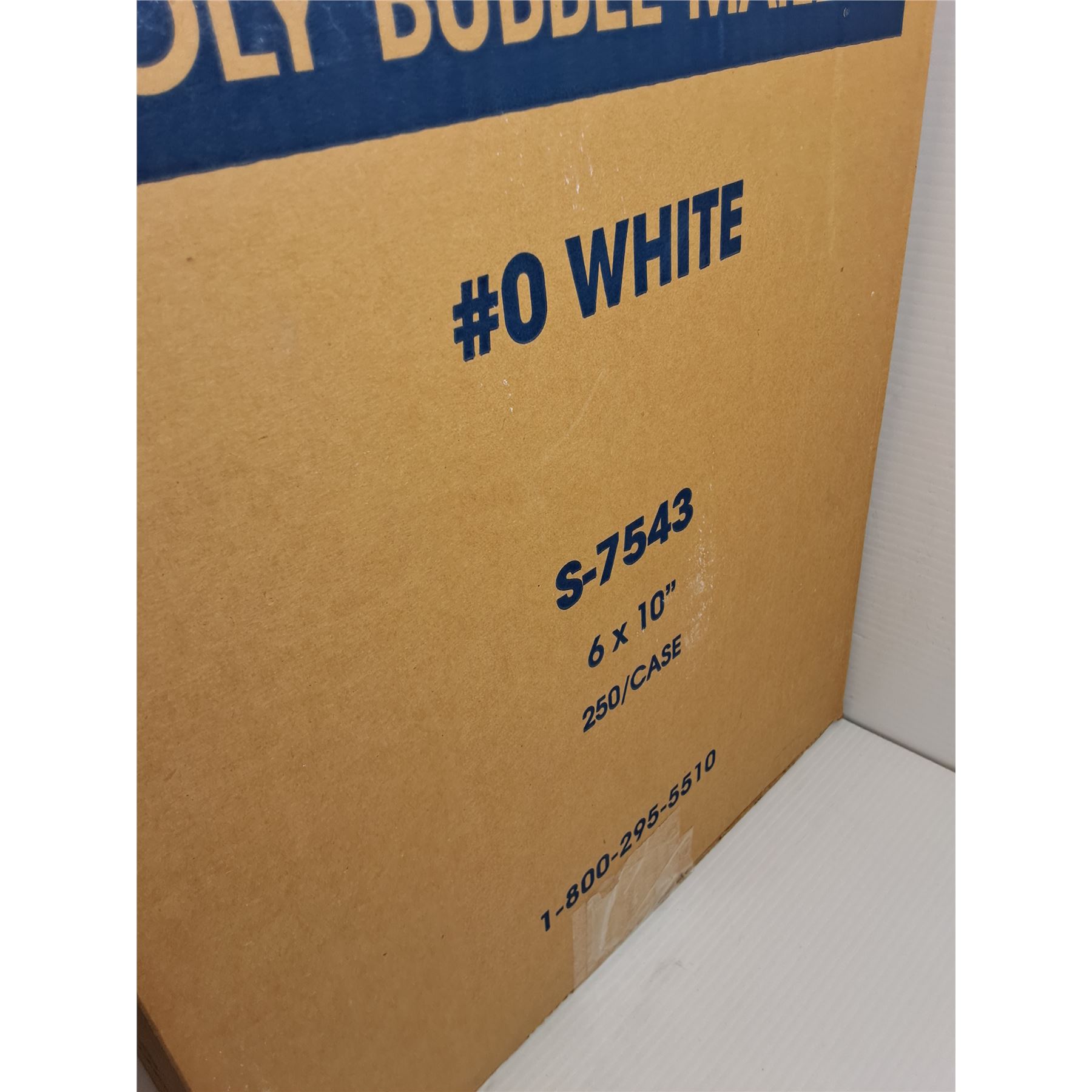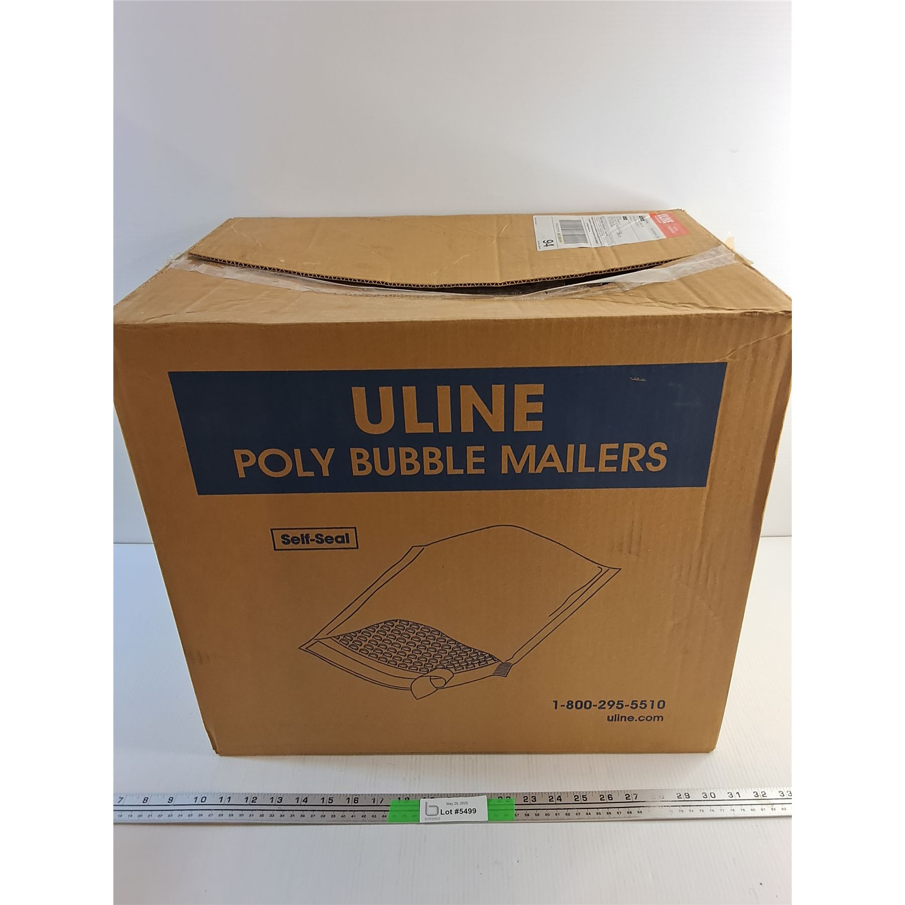 Box of Uline Poly Bubble Mailers- #0. Opened box, some missing