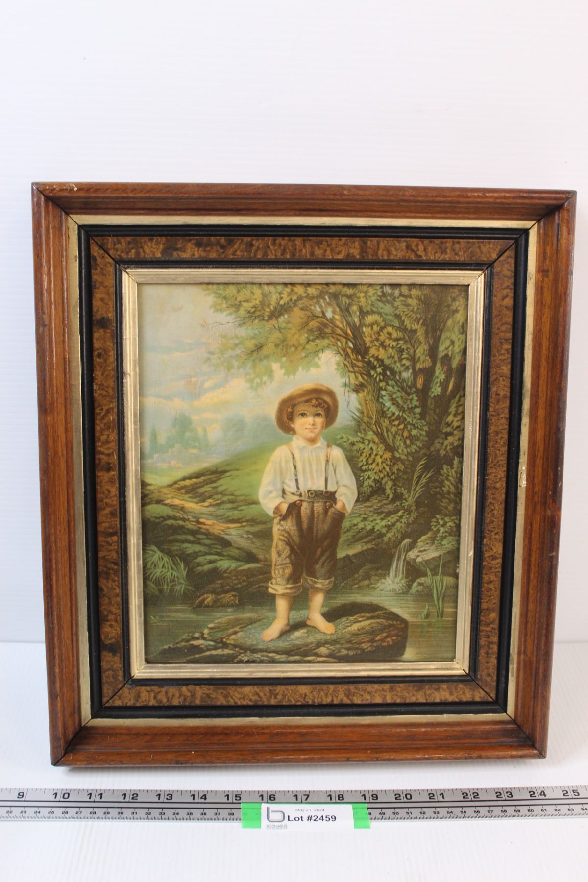 Boy Outdoors Print in Wood Frame - 17" x 15"