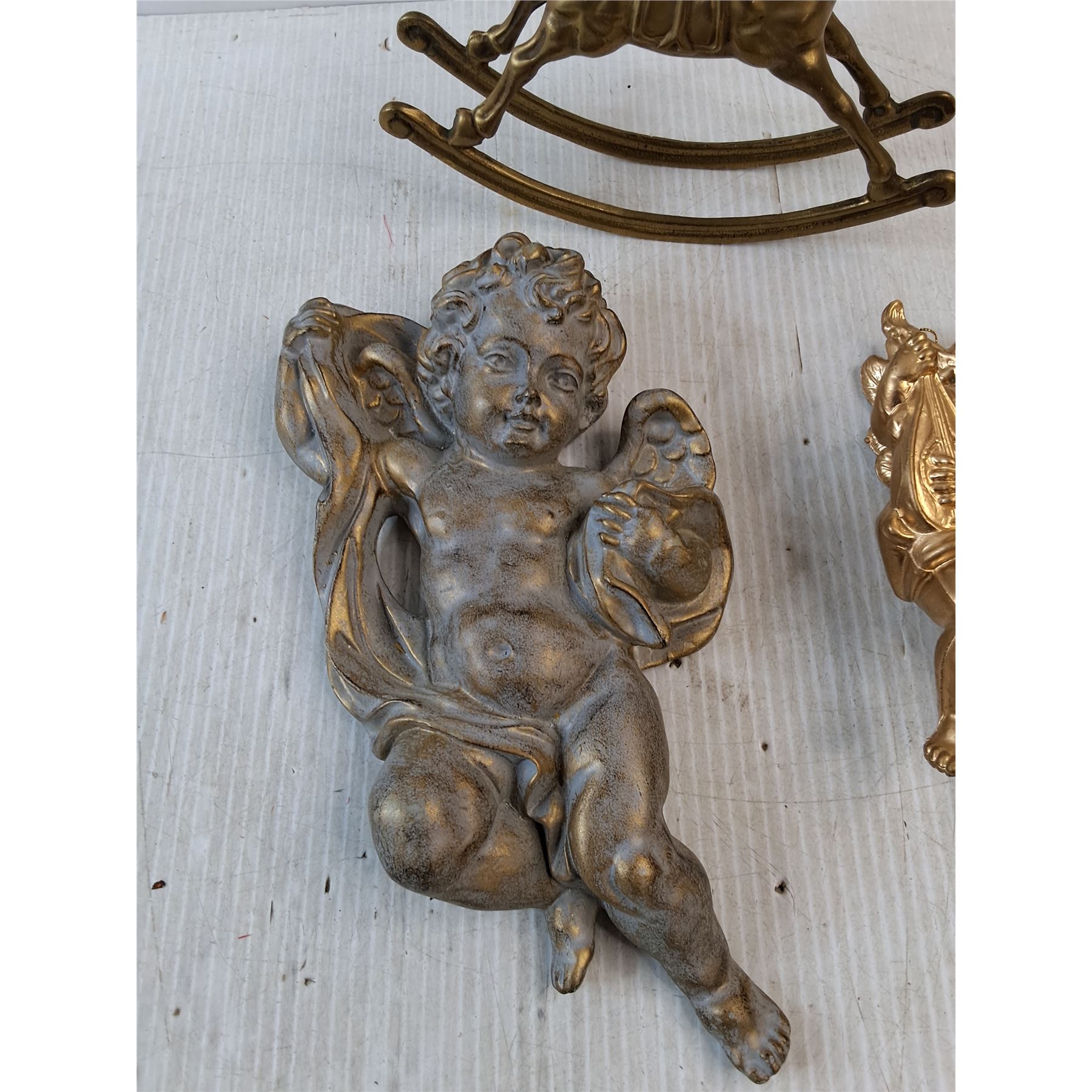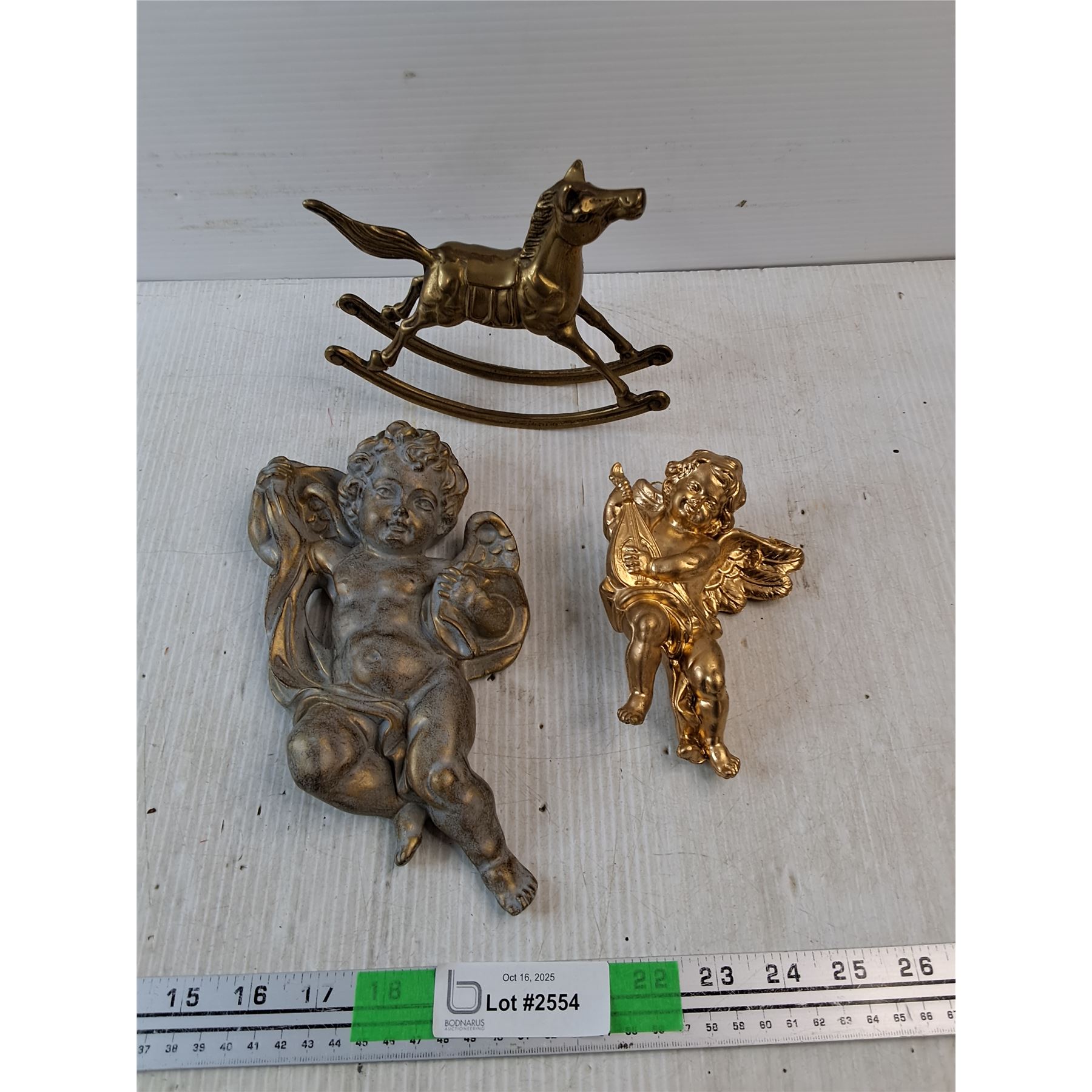 Brass Desktop Rocking Horse Decor, Angel Ornament and Wall Decor