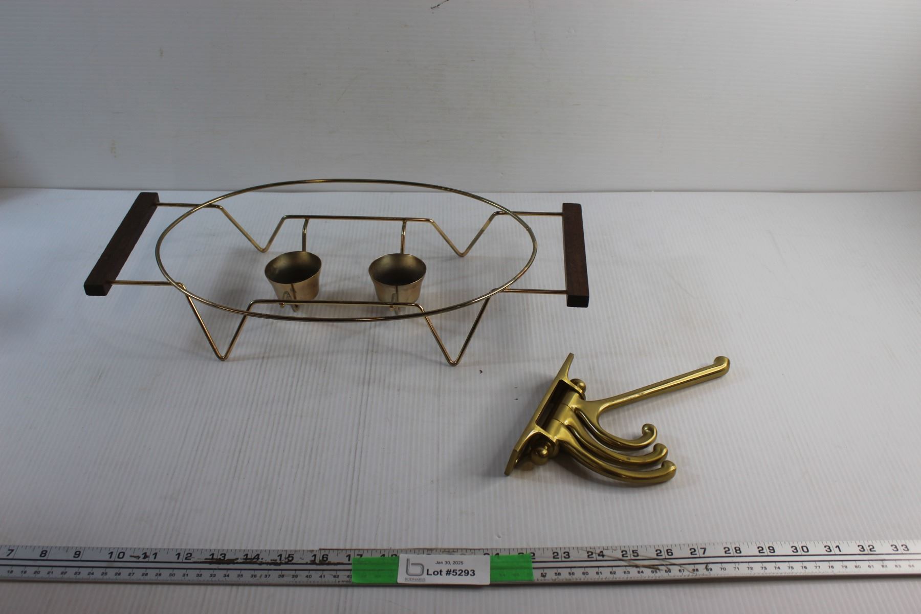 Brass Heated Serving Dish Holder and Brass Coat Hooks