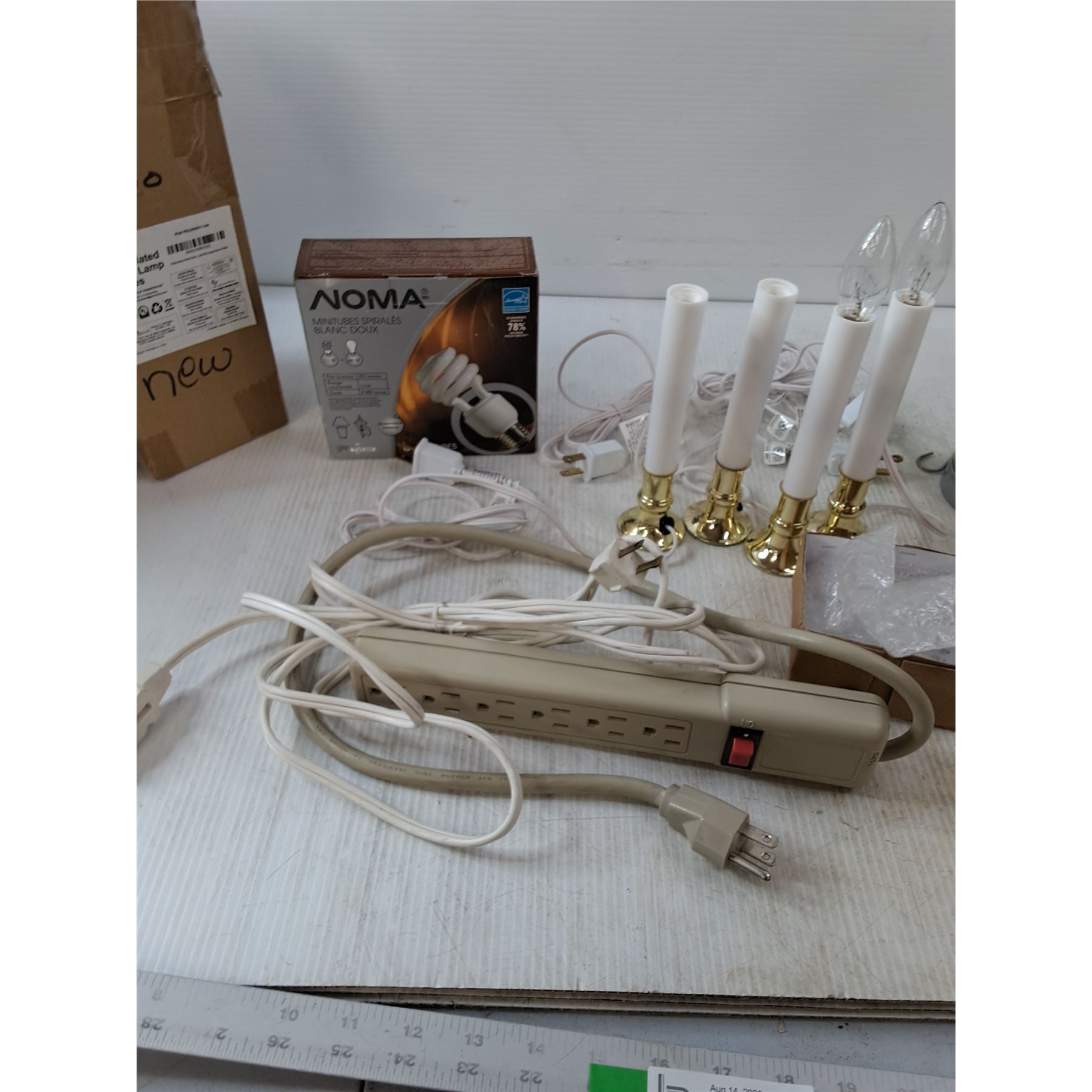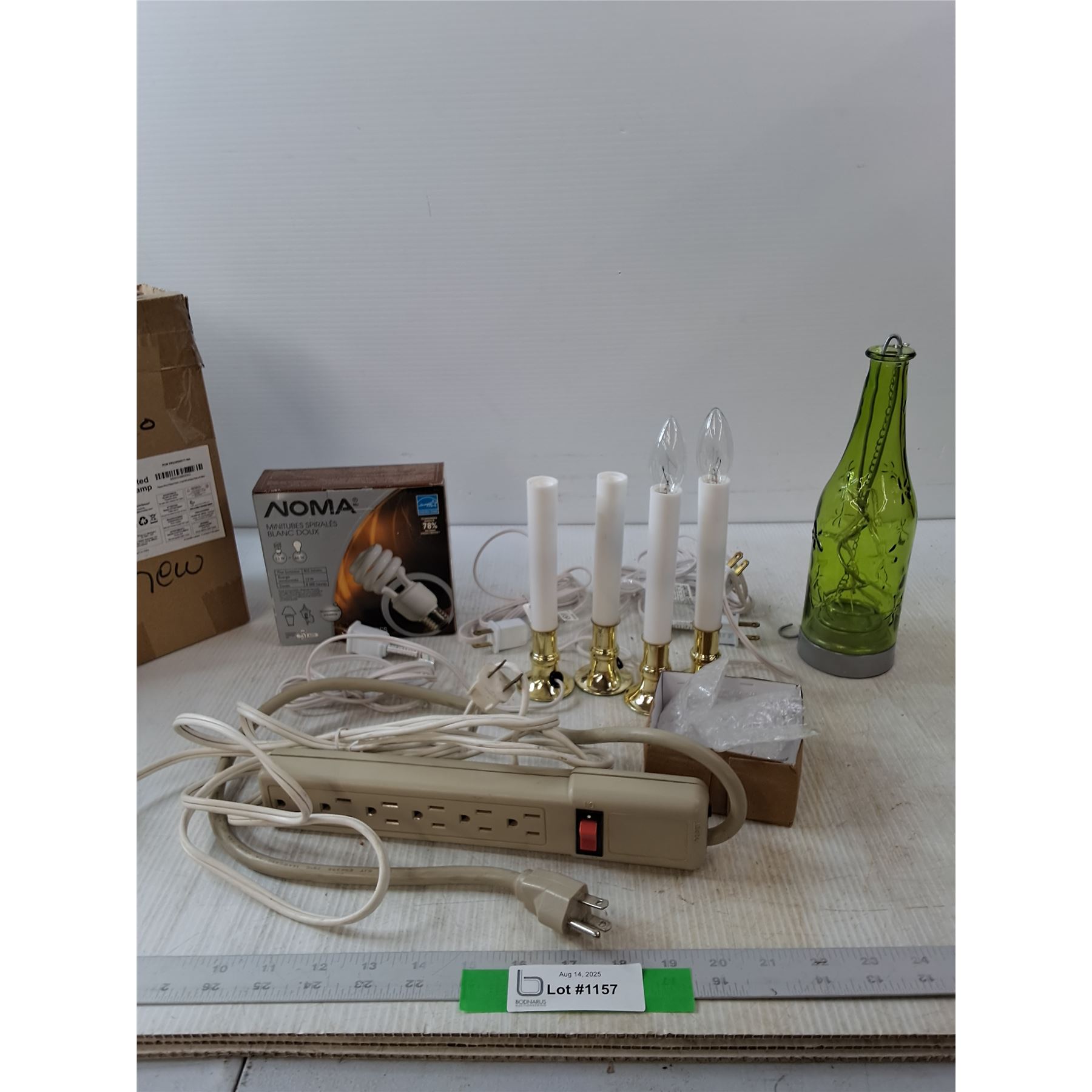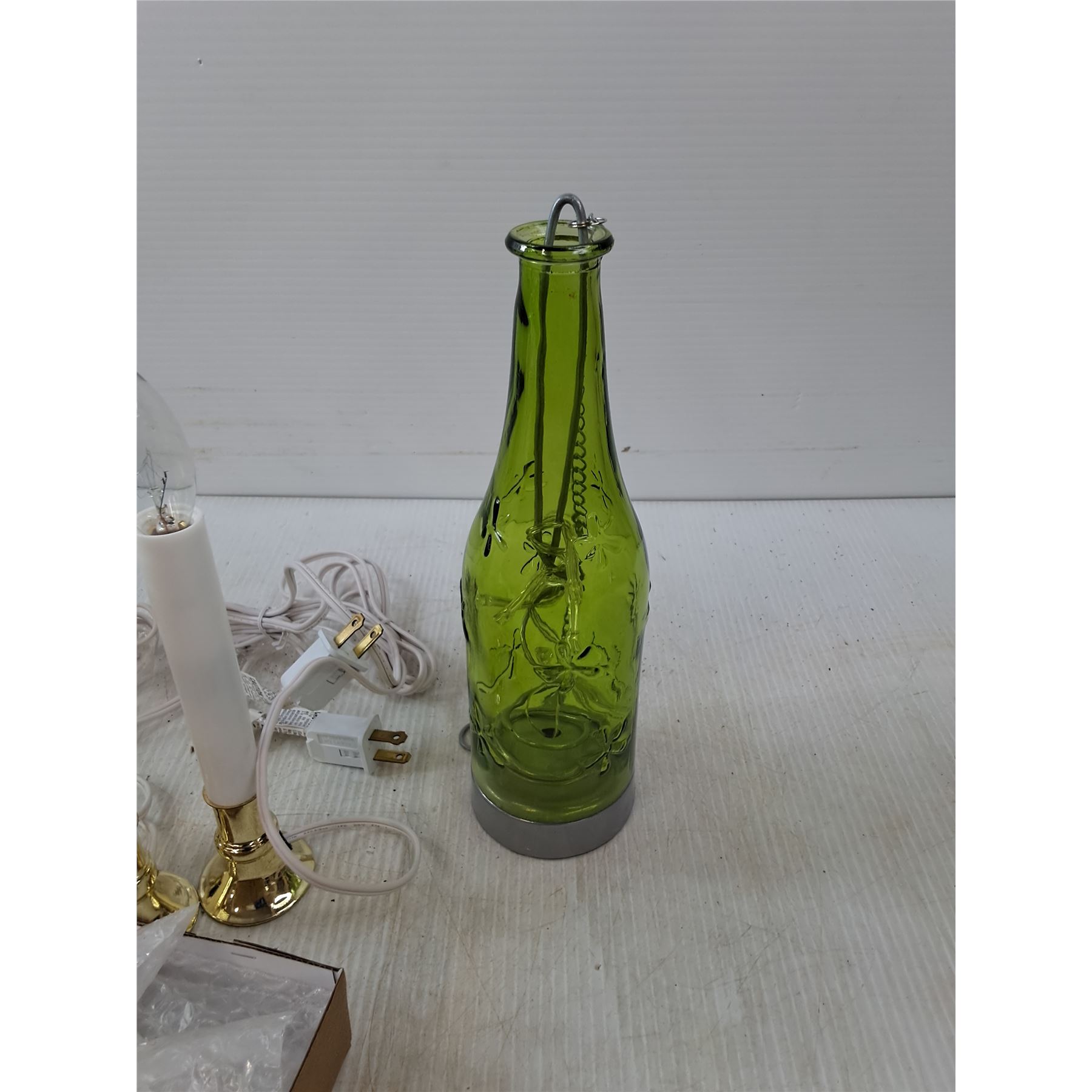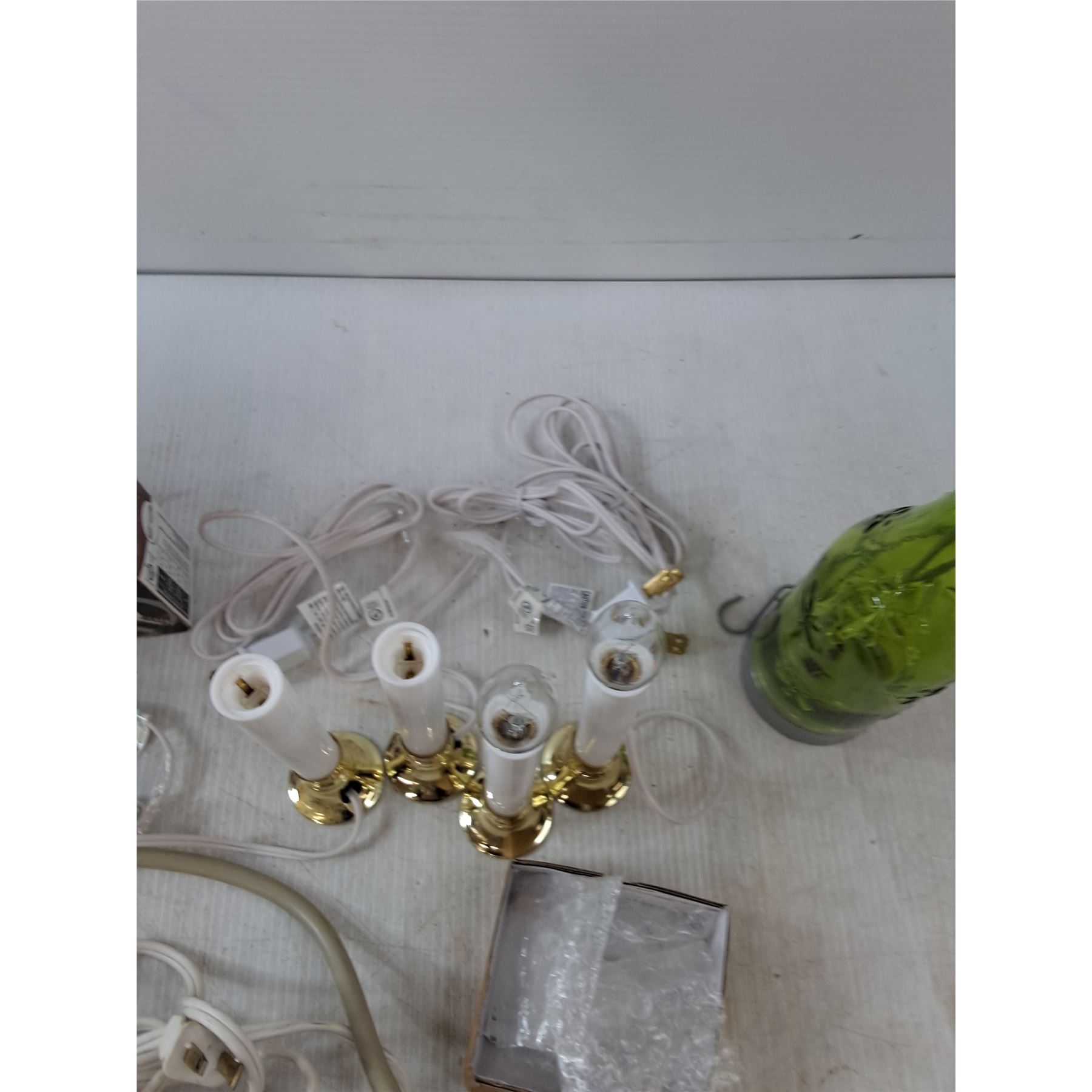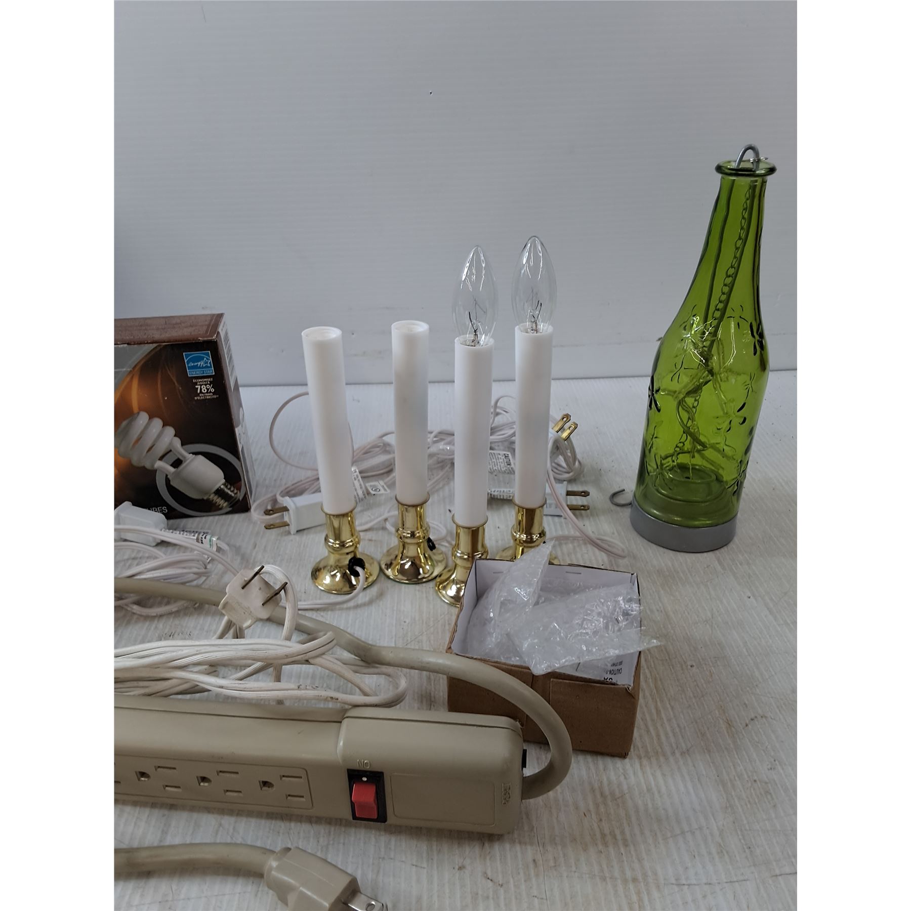 Brass Plated Candle Lights, Hanging Bottle Light, Extension Cord and Noma Light Bulbs