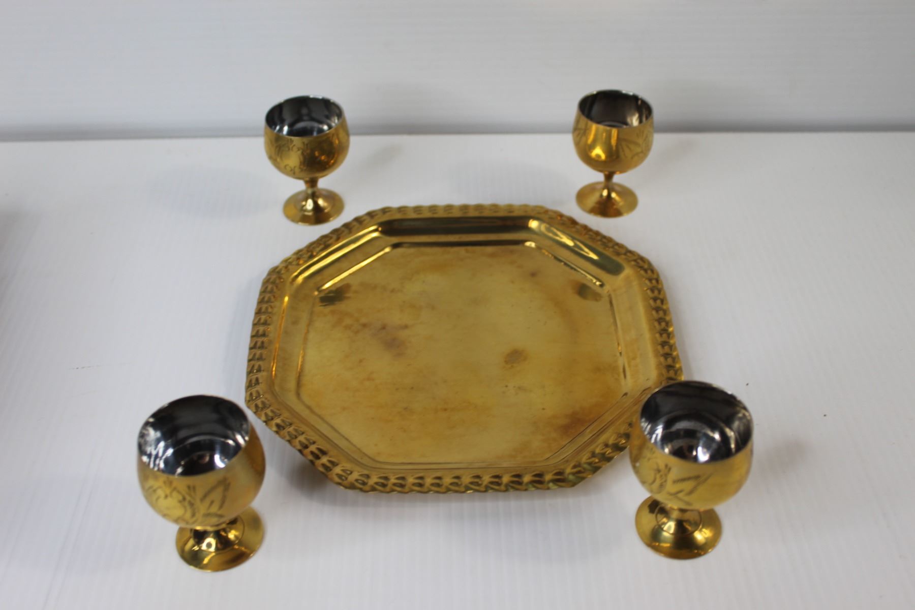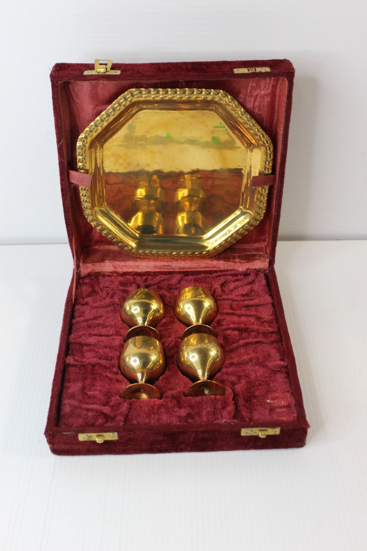 Brass Shot Glasses & Tray in Velvet Case