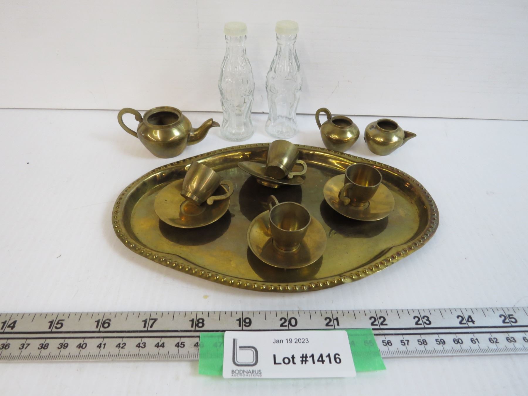 Brass Tray w/cups - Cola Salt & Pepper Shakers