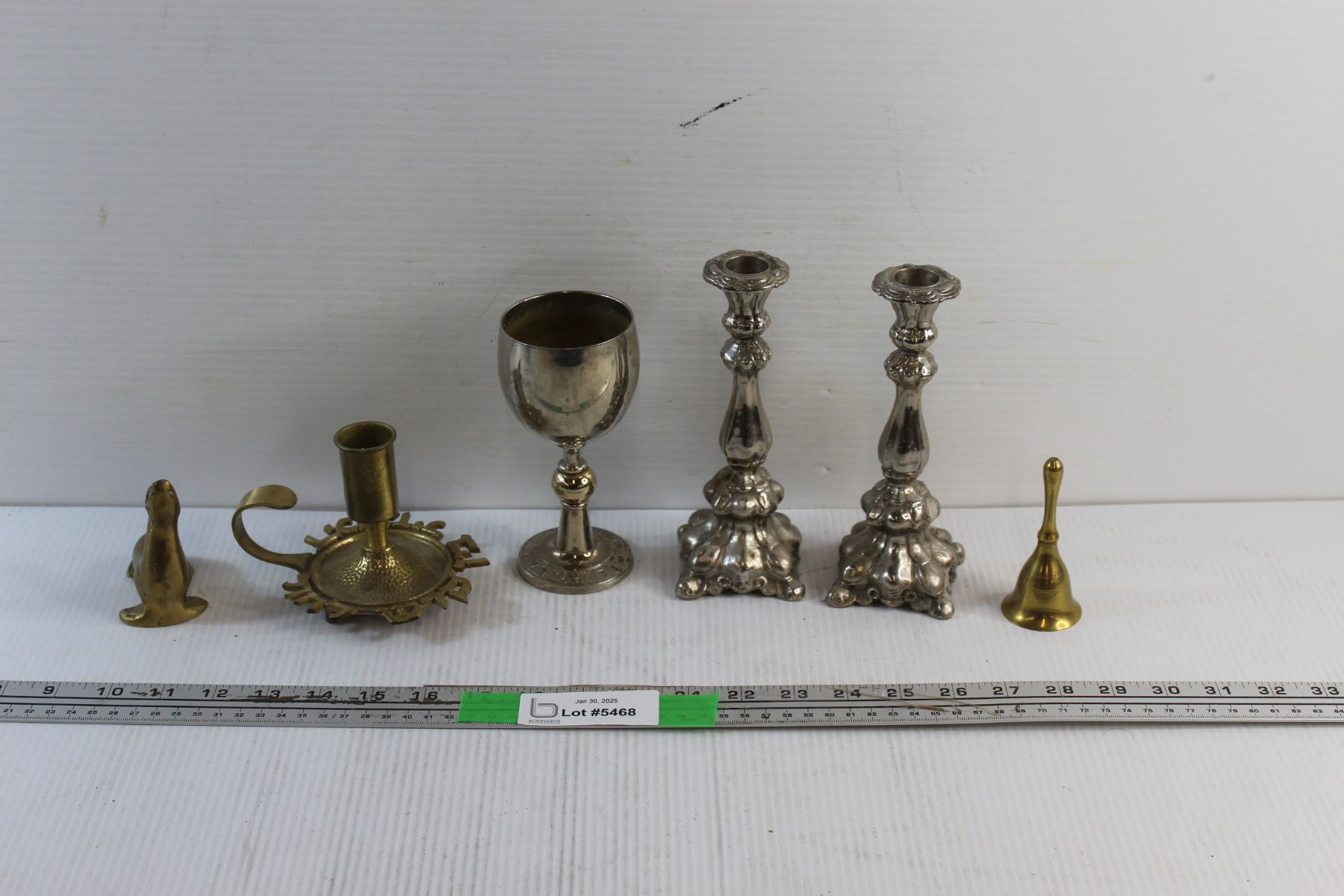 Brass and Silver Candle Holders, Bell, Sealion Decor and Goblet