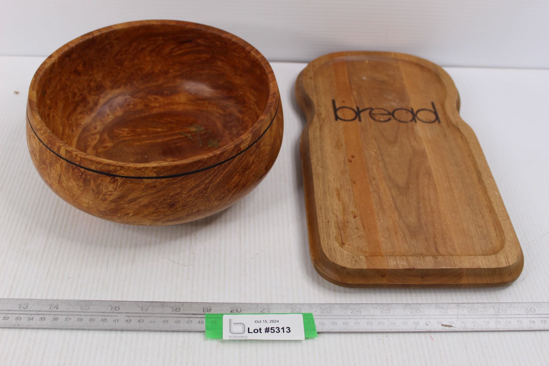 Bread Wooden Cutting Board, Round Hardwood Bowl