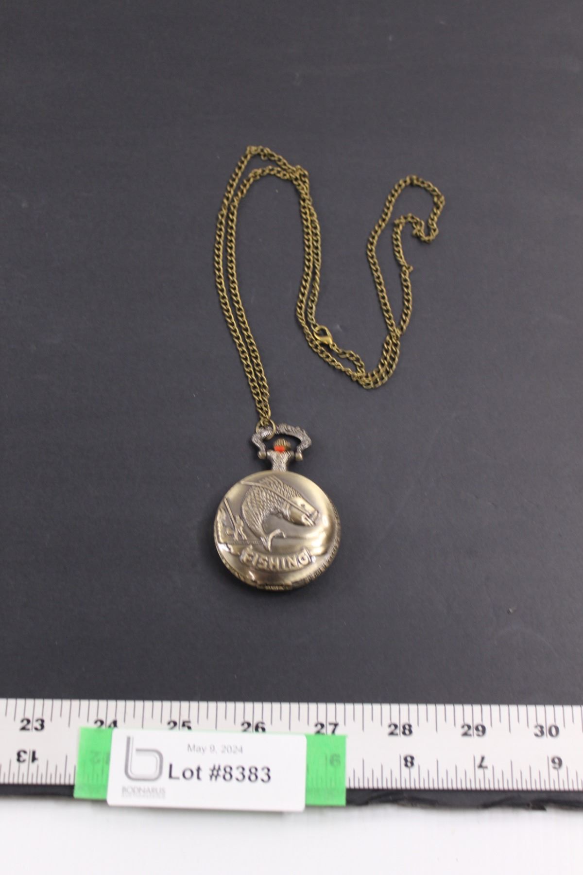 Bronze Tone Quartz Pocket Watch "Fishing"