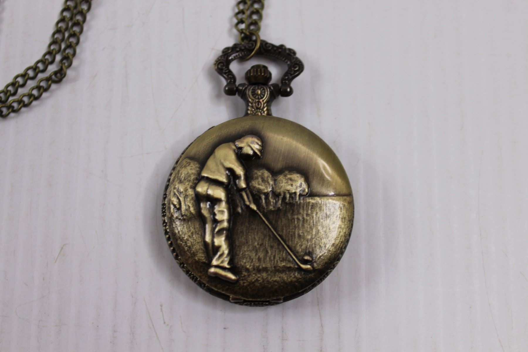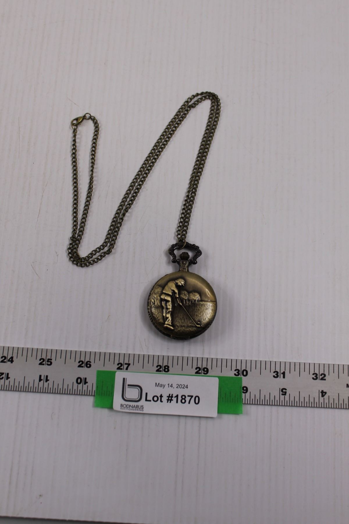 Bronze Tone Quartz Pocket Watch w/ Golf Detail