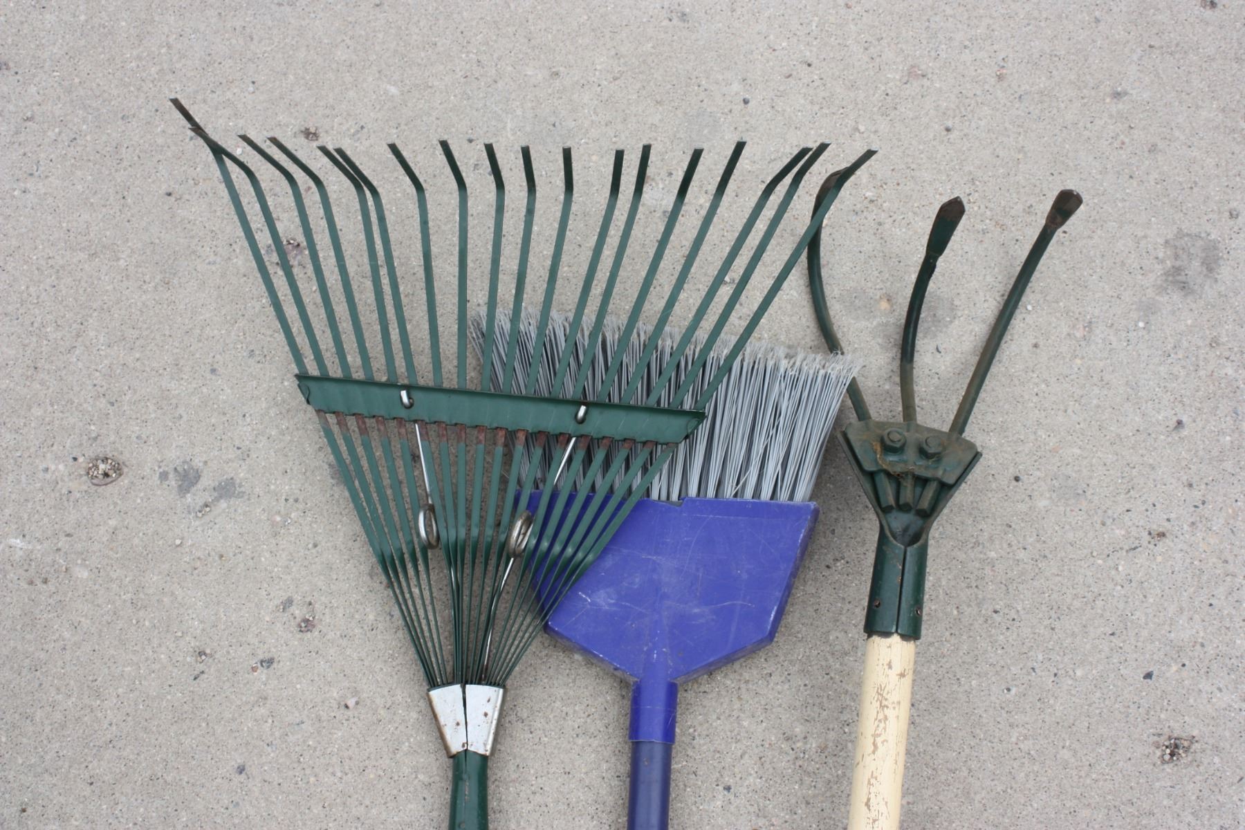Broom, Leaf Rack and Garden Tiller