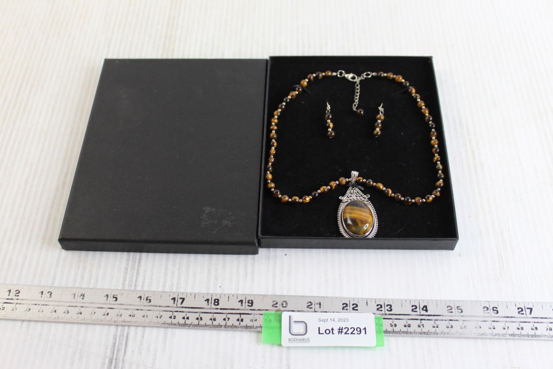 Brown Stone Necklace with Earrings