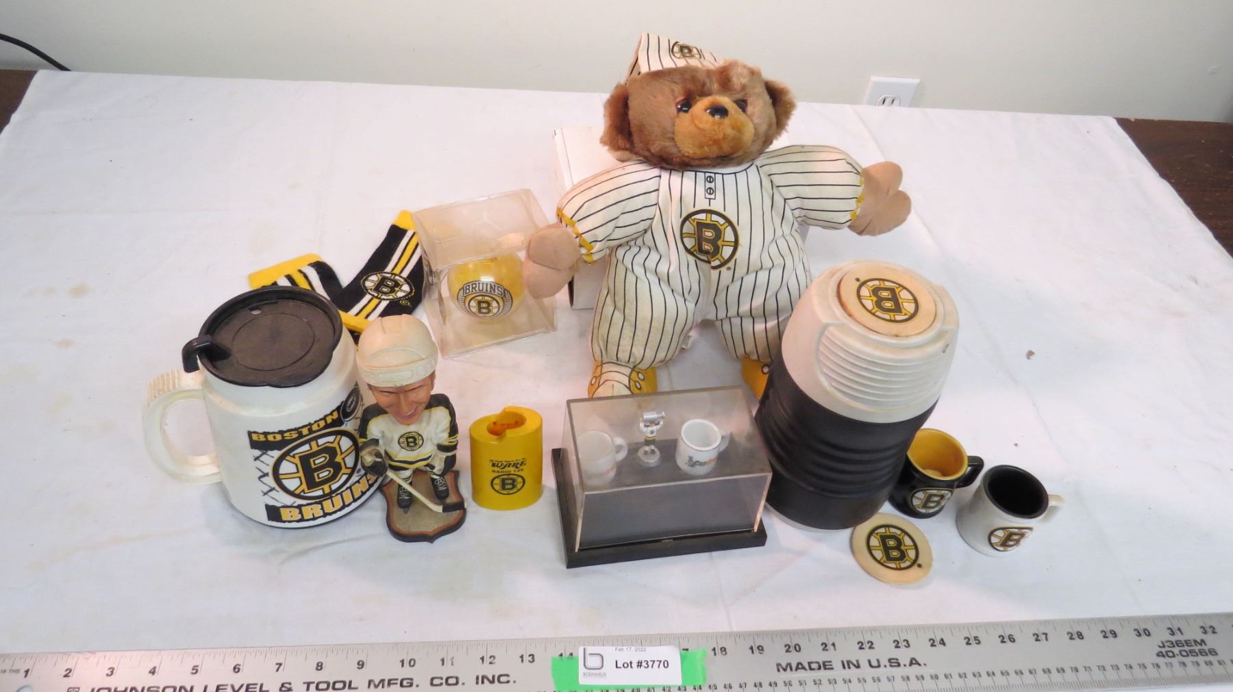 Bruins collectibles - bear, thermos, bobblehead, etc (dirty)