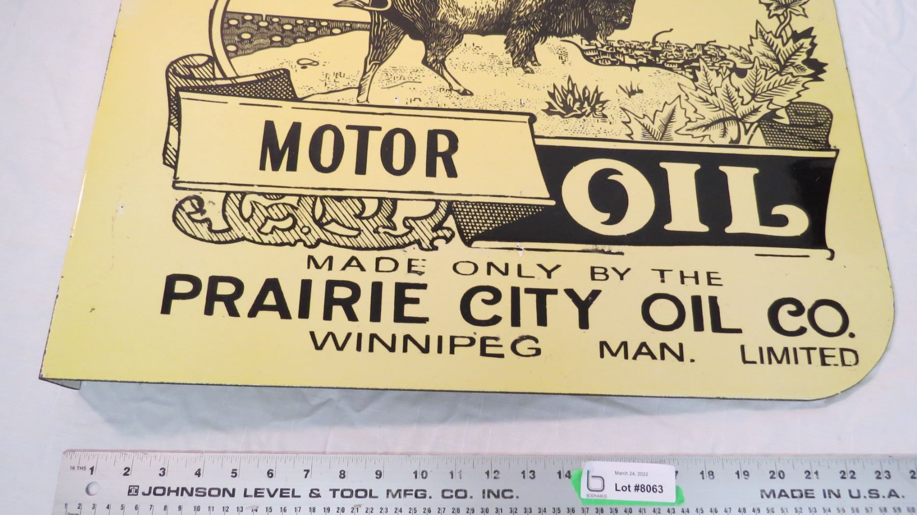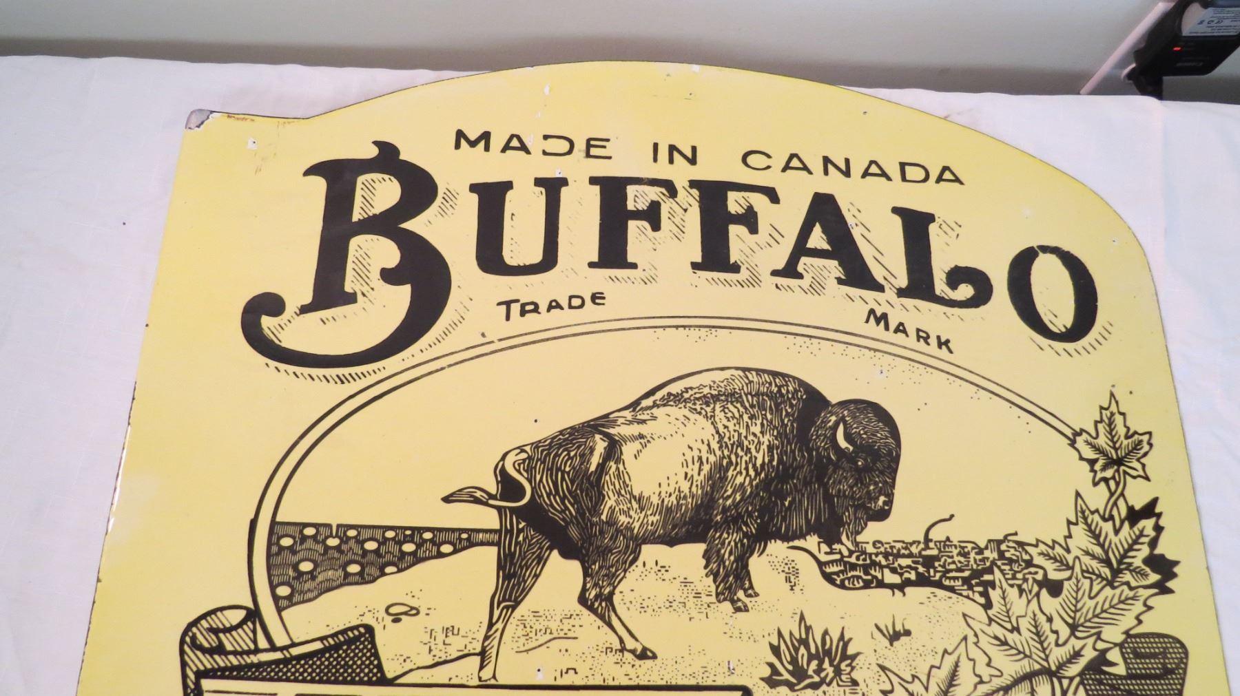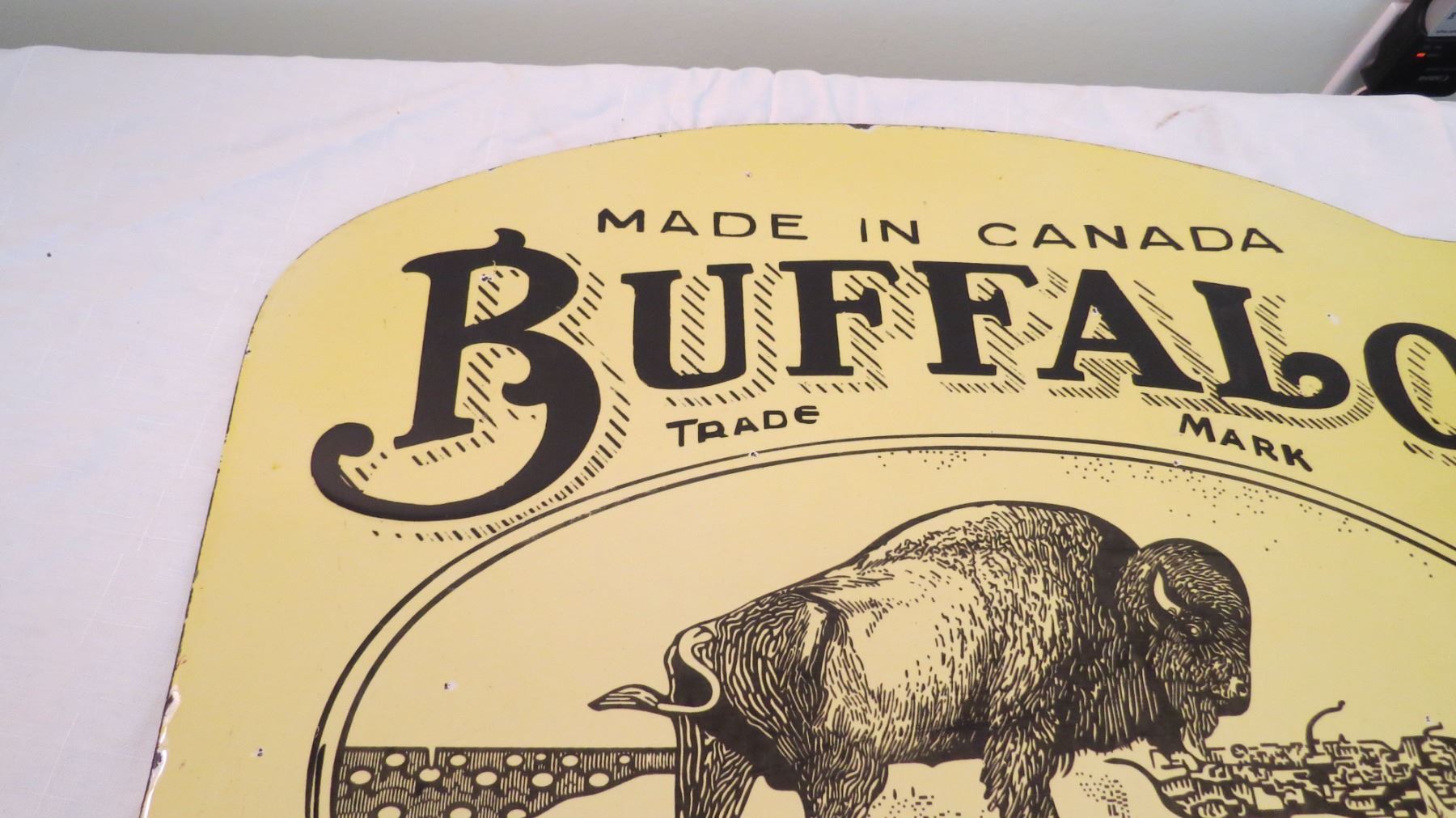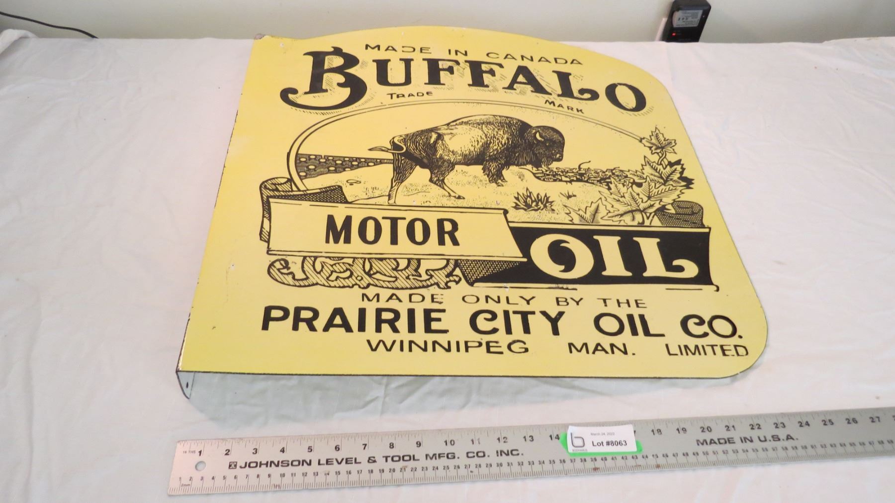 Buffalo motor oil flanged porcelain sign (double sided) - 24"x24.5"