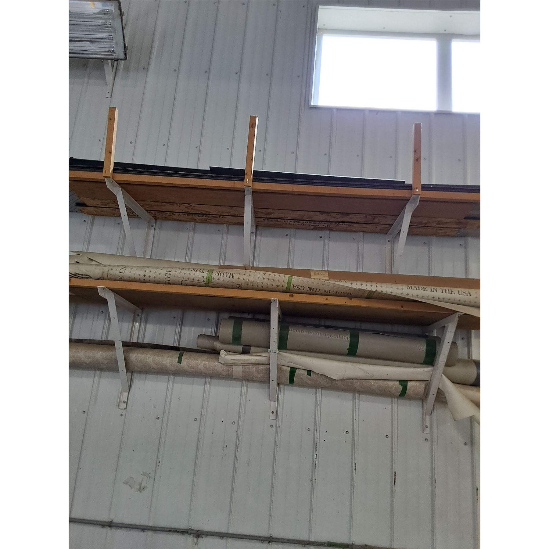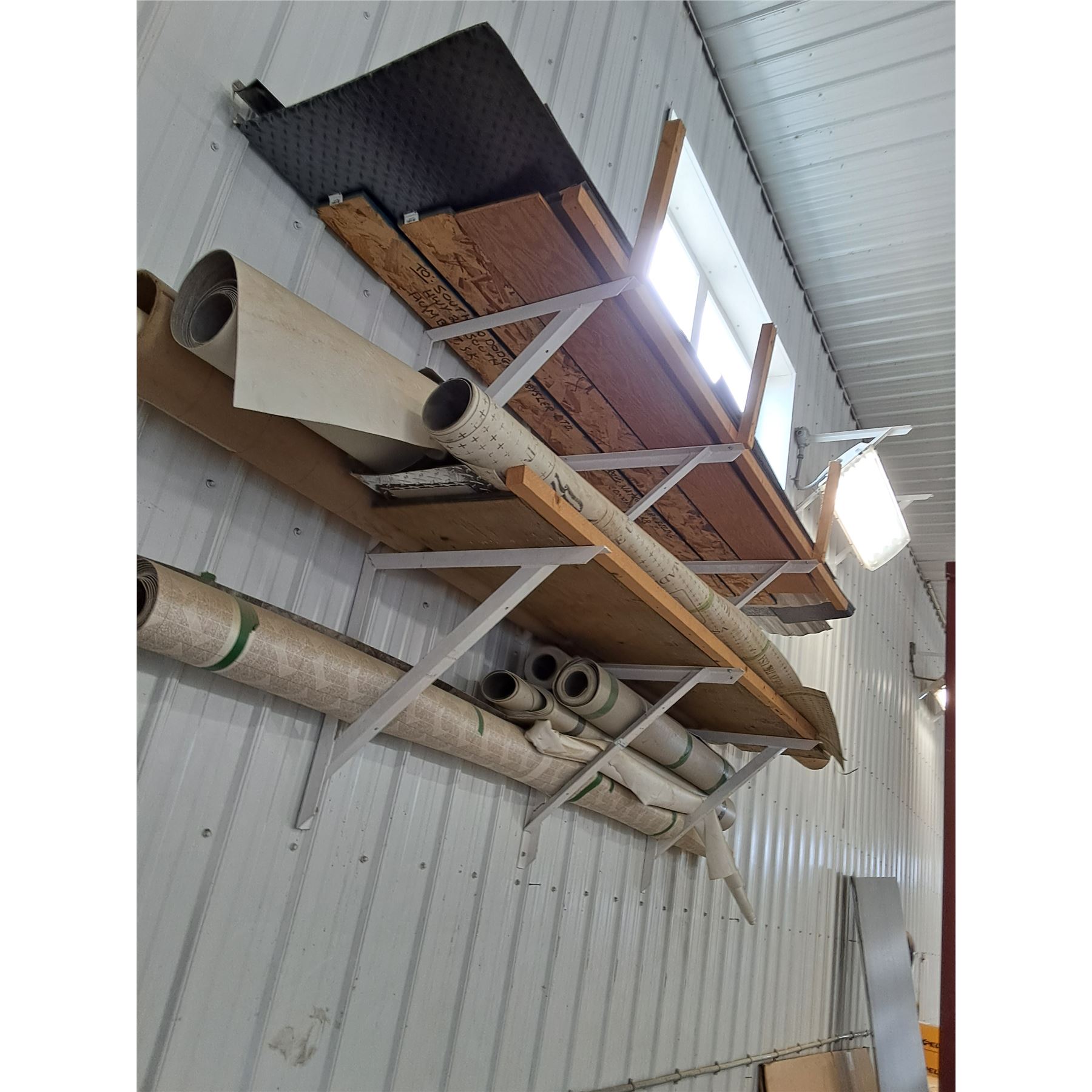 Bulk Rolls of Flooring, Decking, Paneling (This Lot Includes All Pieces on Wall Shelves Below Window